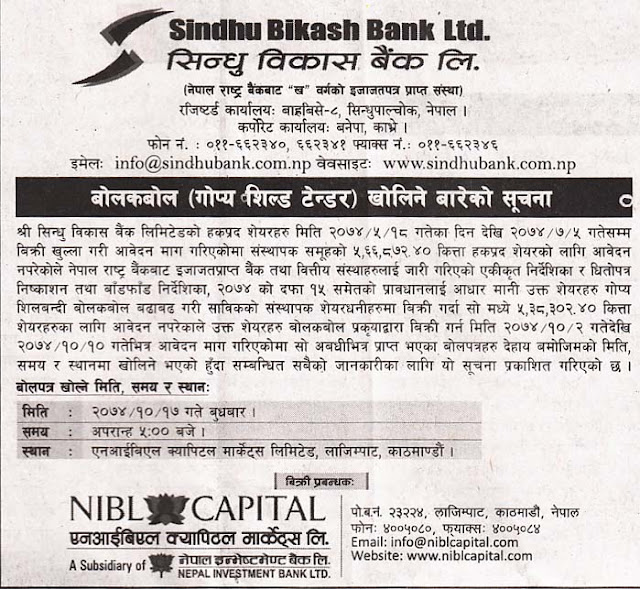 सिन्धु विकास बैंक लिमिटेडको बोलबबोल द्धारा खोलिने अर्थ सरोकार १६ माघ २०७४, मंगलवार पढ्न लाग्ने समय: १ मिनेटभन्दा कम ENG छुटाउनु भयो कि ? ‘यौन दुर्व्यवहार’को जाहेरी परेर थुनिएका कार्कीलाई एनआईसी एशियाले अझै हटाएन