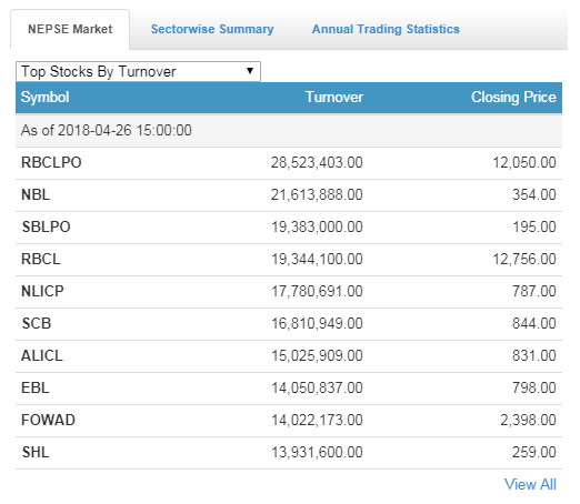 हेर्नुहोस् आज बढी कारोबार भएका कम्पनीहरुको विवरण :