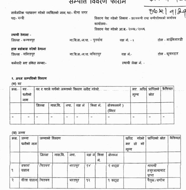 प्रकाश दाहालको जग्गा मावलीका हजुरआमाबाट पाएको र सासु सीता दाहालको नाममा रहेको जग्गा पैत्रिक भनिएको छ ।