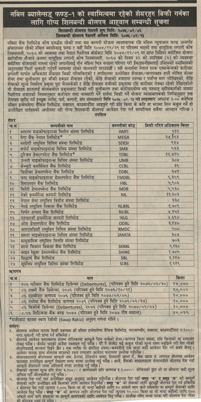 नबिल ब्यालेन्सड् फण्ड-१ को स्वामित्वमा रहेको सेयरहरु बिक्री गर्ने सम्बन्धी सूचना अर्थ सरोकार ४ जेष्ठ २०७५, शुक्रबार पढ्न लाग्ने समय: १ मिनेटभन्दा कम ENG छुटाउनु भयो कि ? ‘यौन दुर्व्यवहार’को जाहेरी परेर थुनिएका कार्कीलाई एनआईसी एशियाले अझै हटाएन