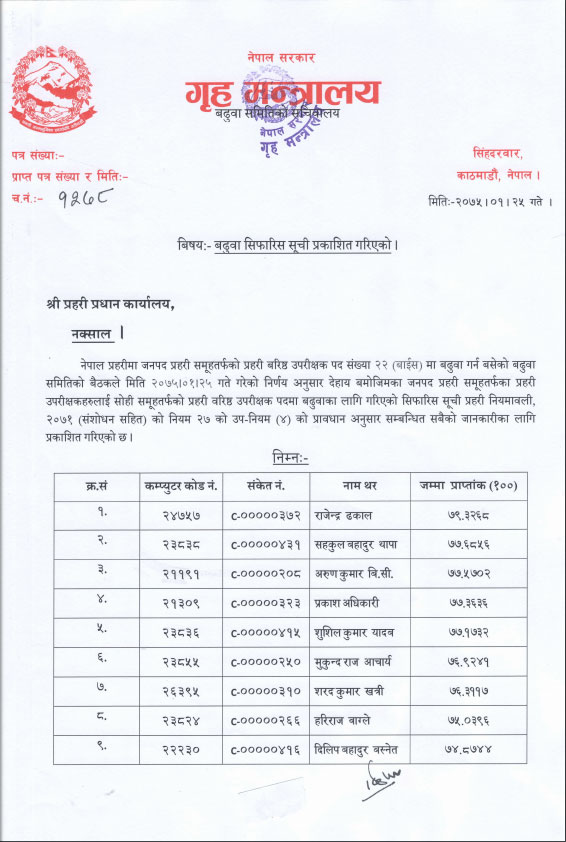 २२ एसपी एसएसपीमा बढुवा गर्न सिफारिस, सिफारिसमा को-को परे ?
