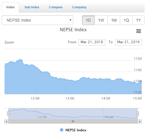 काठमाडौँ – साताको कारोबारको अन्तिम दिन बिहिबार बजार घटेको छ । मंगलबारको तुलनामा बजार ६.८६ अंकले घटेर ११४०.६० विन्दुमा आइपुगेको छ । कुल २७ करोड २४ लाख माथिको कारोबार भएको बजारमा सबैभन्दा बढी कारोबार एनएलआइसीले गरेको छ भने त्यसपछि क्रमश: जीबिआइएमइपी र सीजेटबिआइएलले गरेका छन् । कारोबारको संक्षिप्त विवरण तल हेर्नुहोस् :