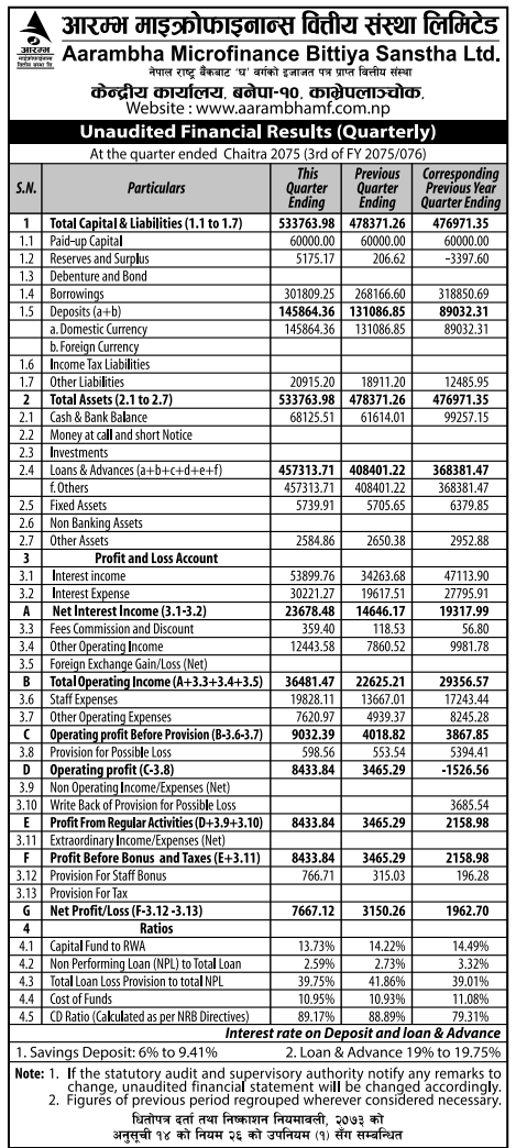 आरम्भ माइक्रोफाइनान्सले गर्यो आकर्षक प्रगति, खुद नाफा २९०.७७% ले वृद्धि हुनुमा यस्ता छन् कारण (विवरणसहित)