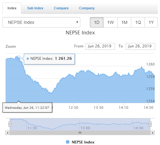 काठमाडौँ – साताको कारोबार चौथौ दिन बुधबार बजार घटेको छ । मंगलबारको तुलनामा बजार २.७८ अंकले घटेर १२५८.२९ विन्दुमा आइपुगेको छ । कुल ५७ करोड १ लाख माथिको कारोबार भएको बजारमा सबैभन्दा बढी कारोबार एचडिएलले गरेको छ भने त्यसपछि क्रमश: एनबिएल र पिआरभियुले गरेका छन् । कारोबारको संक्षिप्त विवरण तल हेर्नुहोस् : हेर्नुहोस् आज बढी कारोबार भएका कम्पनीहरुको विवरण :