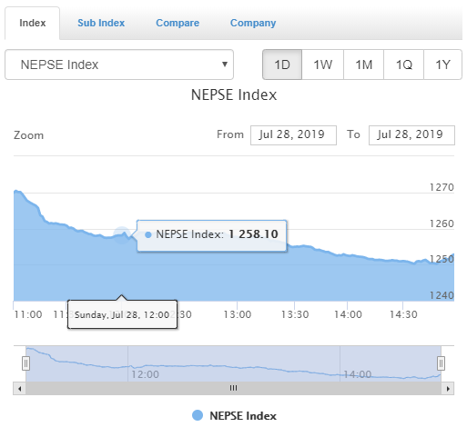 काठमाडौँ – साताको कारोबार पहिलो दिन आइतबार बजार घटेको छ । बिहिबारको तुलनामा बजार १७.११ अंकले घटेर १२५२.८० विन्दुमा आइपुगेको छ । कुल ४९ करोड २६ लाख माथिको कारोबार भएको बजारमा सबैभन्दा बढी कारोबार एडीबीएलले गरेको छ भने त्यसपछि क्रमश: एनबिएल र सिबिबीएलले गरेका छन् । कारोबारको संक्षिप्त विवरण तल हेर्नुहोस् :