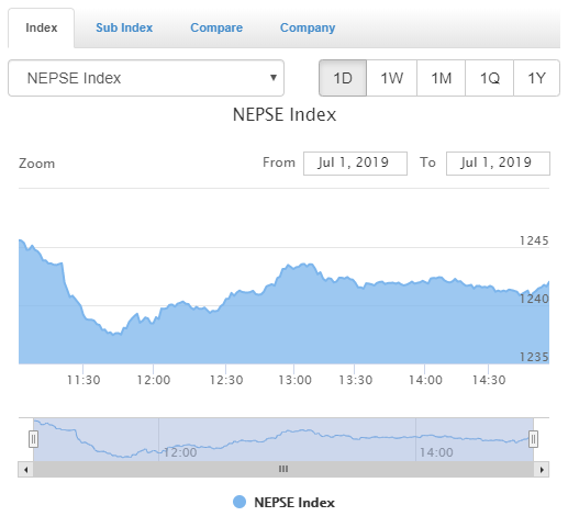 काठमाडौँ – साताको कारोबारको दोस्रो दिन सोमबार बजार घटेको छ । आइतबारको तुलनामा बजार २.८६ अंकले घटेर १२४२.०३ विन्दुमा आइपुगेको छ । कुल ३७ करोड ४७ लाख माथिको कारोबार भएको बजारमा सबैभन्दा बढी कारोबार एनबिएलले गरेको छ भने त्यसपछि क्रमश: पिआरभियु र शिवमले गरेका छन् । कारोबारको संक्षिप्त विवरण तल हेर्नुहोस् :