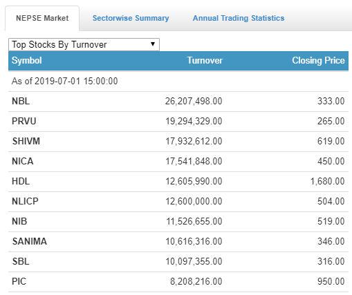 हेर्नुहोस् आज बढी कारोबार भएका कम्पनीहरुको विवरण :