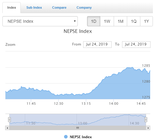 काठमाडौँ – साताको कारोबारको चौथौ दिन बुधबार बजार बढेको छ । मंगलबारको तुलनामा बजार ६.९० अंकले बढेर १२८४.०७ विन्दुमा आइपुगेको छ । कुल ४४ करोड ३४ लाख माथिको कारोबार भएको बजारमा सबैभन्दा बढी कारोबार एनबिएलले गरेको छ भने त्यसपछि क्रमश: एडिबिएल र पिआरभियुले गरेका छन् । कारोबारको संक्षिप्त विवरण तल हेर्नुहोस् :