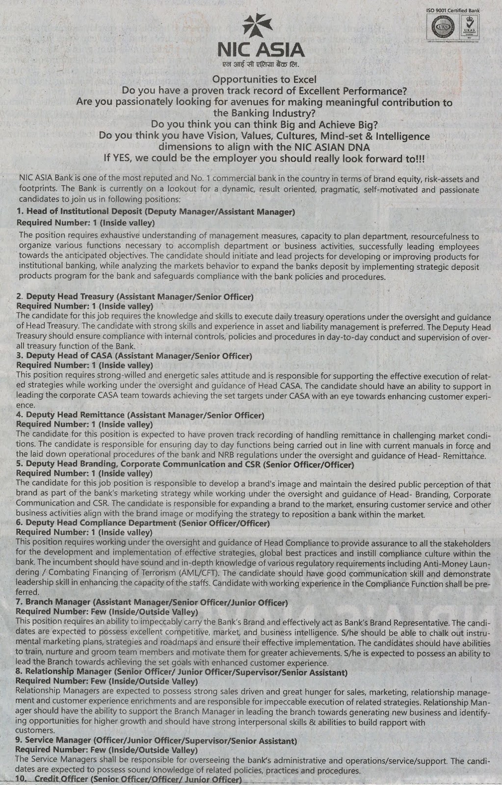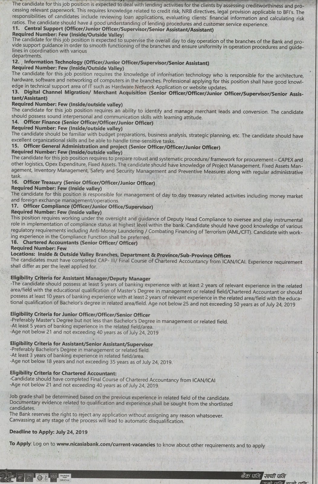 एनआइसी एशिया बैंकमा १८ पदका लागि जागिर खुल्यो, यस्तो छ आवश्यक योग्यता र अनुभव (भ्याकेन्सी नोटिससहित)