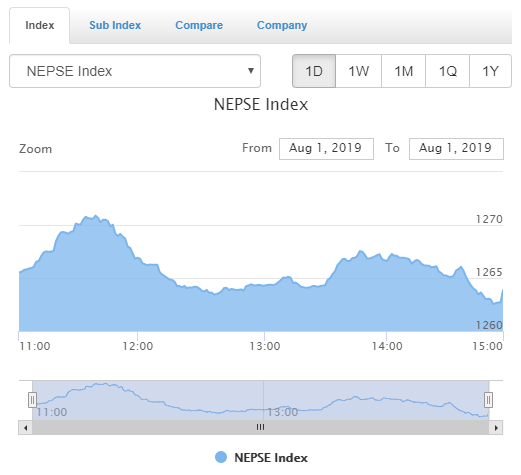 काठमाडौँ – साताको कारोबारको अन्तिम दिन बिहिबार बजार घटेको छ । बुधबारको तुलनामा बजार १.७४ अंकले घटेर १२६३.८४ विन्दुमा आइपुगेको छ । कुल ५९ करोड ५ लाख माथिको कारोबार भएको बजारमा सबैभन्दा बढी कारोबार एनआइएलपीओले गरेको छ भने त्यसपछि क्रमश: जीबिएलबिएस र एमएनबीबीएलले गरेका छन् । कारोबारको संक्षिप्त विवरण तल हेर्नुहोस् :