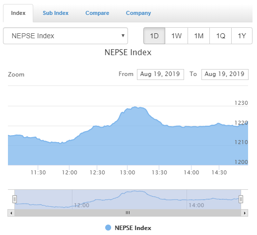 काठमाडौँ – साताको कारोबारको दोस्रो दिन सोमबार बजार बढेको छ । आइतबारको तुलनामा बजार ७.२३ अंकले बढेर १२२२.०६ विन्दुमा आइपुगेको छ । कुल ३८ करोड ९६ लाख माथिको कारोबार भएको बजारमा सबैभन्दा बढी कारोबार एसबिएलपीओले गरेको छ भने त्यसपछि क्रमश: आरएचपीएल र एनआइसीएलले गरेका छन् । कारोबारको संक्षिप्त विवरण तल हेर्नुहोस् :