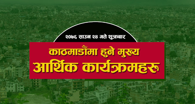 आज २०७६ साल साउन २३ गते शुक्रबार । यस्ता छन् काठमाडौँमा हुने मुख्य आर्थिक कार्यक्रमहरु :