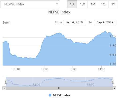 काठमाडौँ – साताको कारोबारको चौथो दिन बुधबार बजार बढेको छ । मंगलबारको तुलनामा बजार ३.८७ अंकले बढेर ११९४.७७ विन्दुमा आइपुगेको छ । कुल ४३ करोड ६४ लाख माथिको कारोबार भएको बजारमा सबैभन्दा बढी कारोबार माछापुच्छ्रे बैंकले गरेको छ भने त्यसपछि क्रमश: नेपाल बैंक लिमिटेड र सिटिजन इन्भेष्ट ट्रस्टले गरेका छन् । कारोबारको संक्षिप्त विवरण तल हेर्नुहोस् :