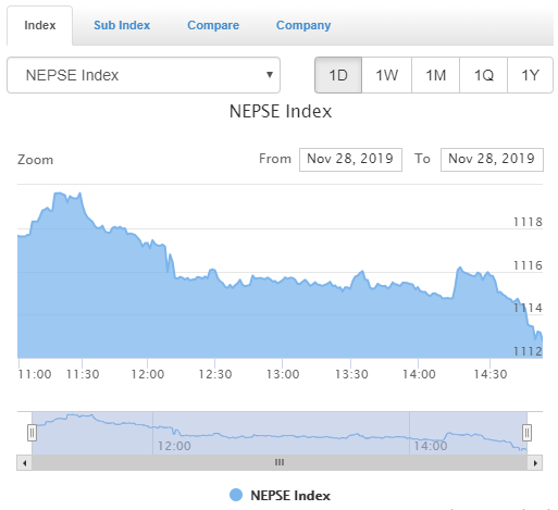काठमाडौँ – साताको कारोबारको अन्तिम दिन दिन बिहिबार बजार घटेको छ । बुधबारको तुलनामा बजार ४.६७ अंकले घटेर १११२.७९ विन्दुमा आइपुगेको छ । कुल २४ करोड ३३ लाख माथिको कारोबार भएको बजारमा सबैभन्दा बढी कारोबार एचडिएलले गरेको छ भने त्यसपछि क्रमश: एनएमबि र नबिलले गरेका छन् । कारोबारको संक्षिप्त विवरण तल हेर्नुहोस् :