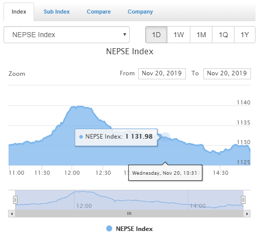 काठमाडौँ – साताको कारोबार चौथौ दिन बुधबार बजार घटेको छ । मंगलबारको तुलनामा बजार १.६५ अंकले घटेर ११२८.३४ विन्दुमा आइपुगेको छ । कुल ३० करोड ३७ लाख माथिको कारोबार भएको बजारमा सबैभन्दा बढी कारोबार एनएमबिले गरेको छ भने त्यसपछि क्रमश: एनबिएल र नबिलले गरेका छन् । कारोबारको संक्षिप्त विवरण तल हेर्नुहोस् :