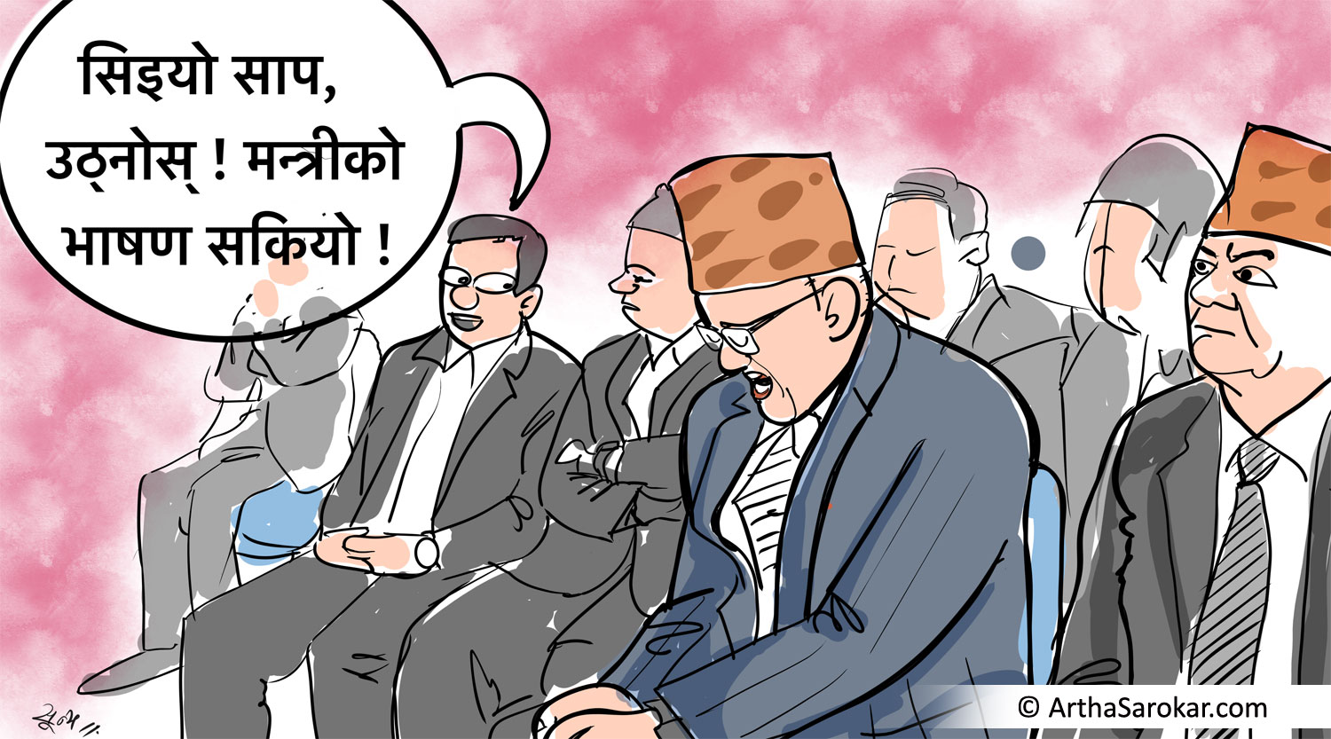 कार्टुन : सिइओ साप उठ्नोहोस्, मन्त्रीज्यूको भाषण सकियो !