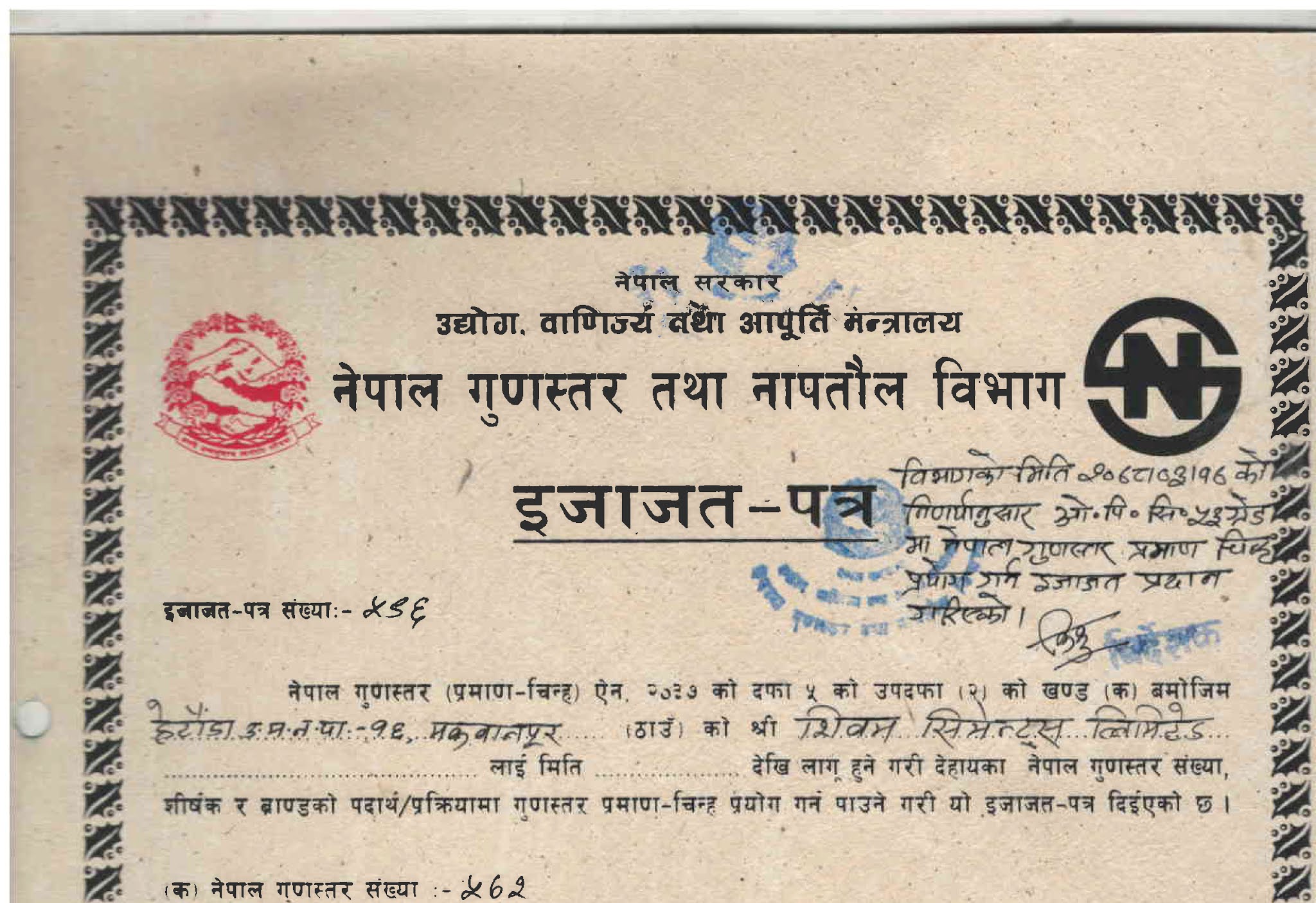 यो भन्दा पहिला नेपाल गुणस्तर तथा नापतौल विभागले एन.एस-४९ प्रामाणिकरण गर्दै आईरहेको थियो जस अन्तर्गत उत्पादित सिमेन्टहरु कुनै पनि ग्रेड उल्लेख नगरी बजारमा उपलव्ध थिए । नेपालमा एन.एस ४९ को मापदण्ड अनुरुप उत्पादन तथा बिक्री वितरणको मान्यता दिदै आएको गुणस्तर तथा नापतौल विभागले सिमेन्टको उच्च गुणस्तरको सुनिश्चितता गर्ने उद्देश्यले एन.एस-५७२ को अवधारणा सहित ग्रेडिङ सिस्टमबाट सिमेन्टको गुणस्तर मापन कार्य अगाडि बढाएको हो । अब कुनै पनि सिमेन्ट कम्पनीले ५३ ग्रेड अथवा ४३ ग्रेडको सिमेन्ट उत्पादन तथा विक्रि वितरण गर्न एन.एस-५७२ प्रमाणिकरण गर्नु अनिवार्य छ । जसका लागि नेपाल गुणस्तर तथा नापतैल विभागले विभिन्न तह-तहमा चुनढुङ्गा, कच्चापदार्थहरु, उत्पादन प्रक्रिया, उत्पादित ल्किङ्कर र सिमेन्टको लामो समयसम्म परिक्षण गरी एन.एस-५७२ बमोजिमको गुणस्तर कायम भएको ल्याव परिक्षण समेतका आधारमा गुणस्तरको चेक गरी प्रमाणिकरण गर्ने प्रक्रिया रहेको छ ।