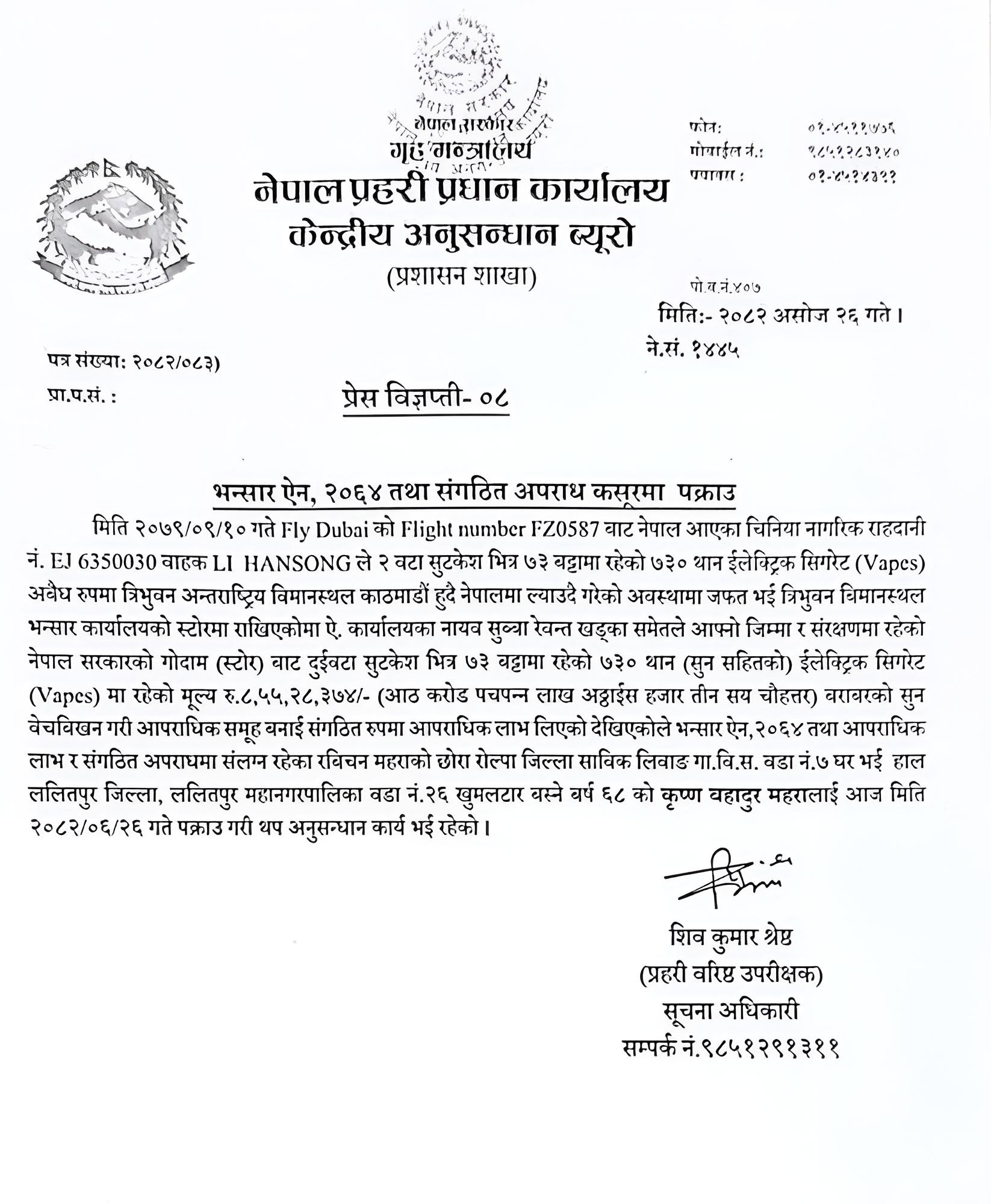 विद्युतीय चुरोट (भेप)मा लुकाएर ३ वर्षअघि सुन तस्करी गराएको प्रकरणमा प्रहरी र जिल्ला सरकारी वकिल कार्यालय काठमाडौंबाट सिलसिलेवार रुपमा उन्मुक्ति पाएका महरामाथि अख्तियारले अनुसन्धान अघि बढाएको हो ।