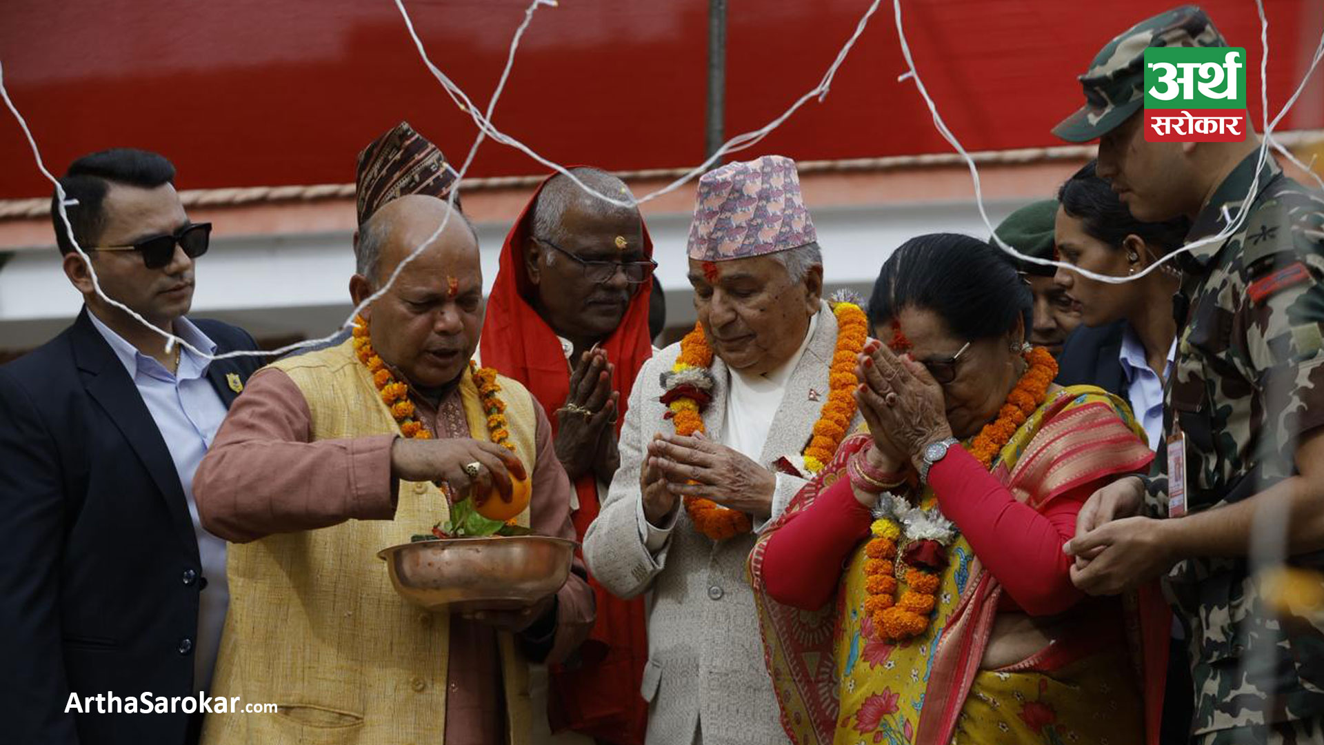 छठ मनाउन राष्ट्रपति पौडेल गौरीघाटमा (तस्विरहरू) अर्थ सरोकार १० कार्तिक २०८२, सोमबार पढ्न लाग्ने समय: १ मिनेटभन्दा कम ENG काठमाडौँ । छठ मनाउन राष्ट्रपति पौडेल गौरीघाट गएका छन् । सोमबार पत्नी सविता पौडेलसहित उनी गौरीघाट पुगेर पूजाआराधना गरेका हुन् । छुटाउनु भयो कि ? ‘यौन दुर्व्यवहार’को जाहेरी परेर थुनिएका कार्कीलाई एनआईसी एशियाले अझै हटाएन