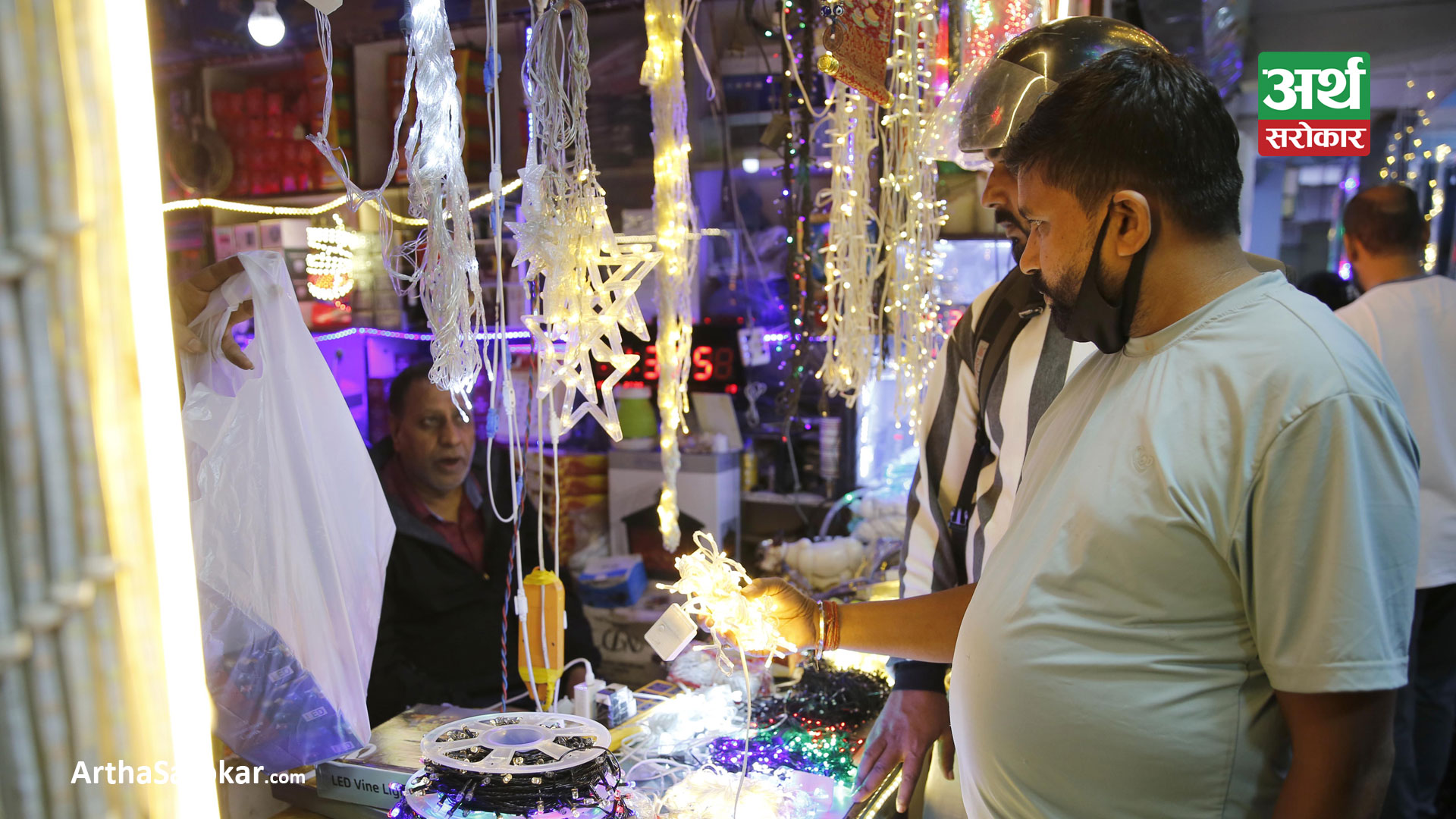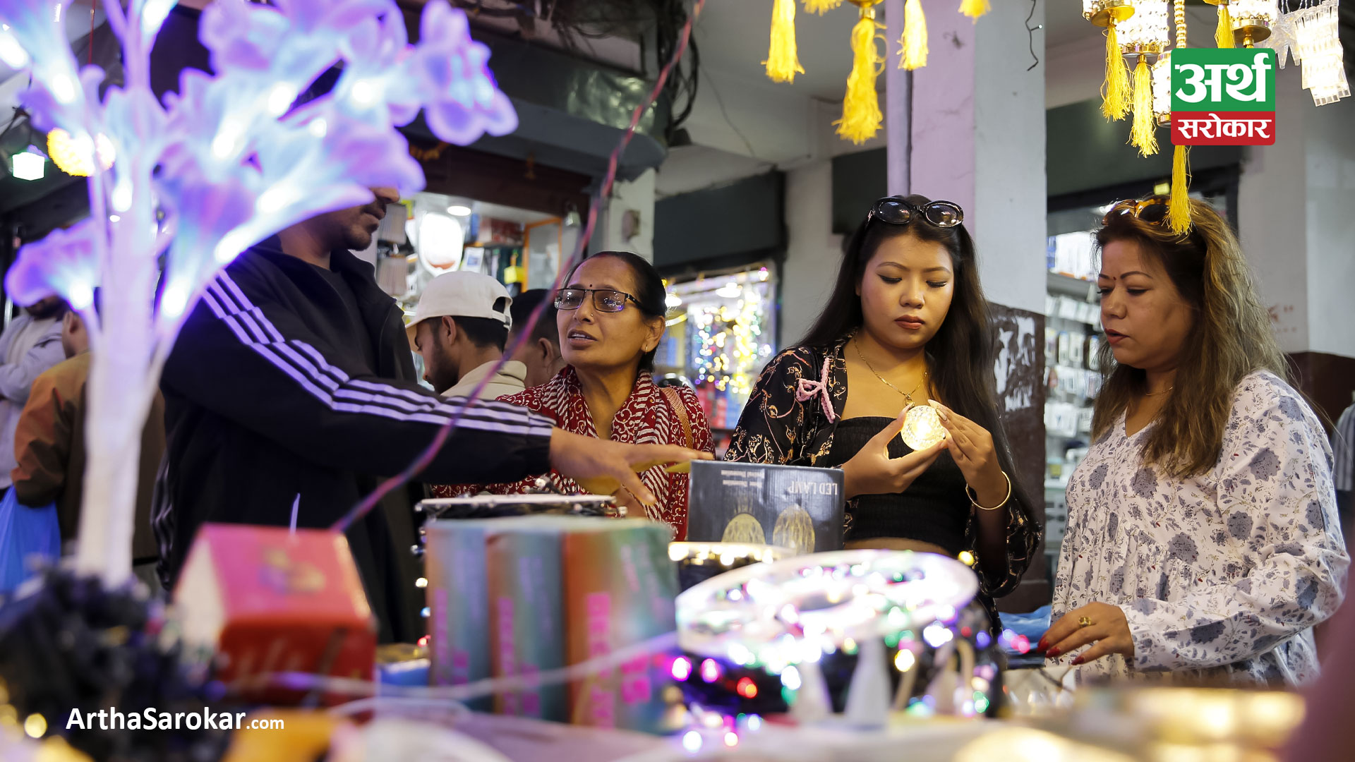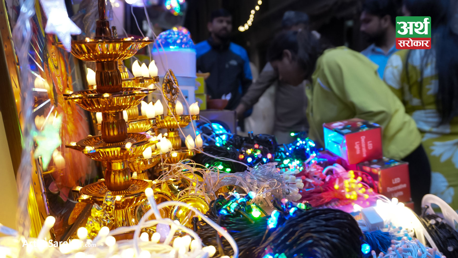 तिहारको लक्ष्मी पूजाका दिन विशेषत घर झिलिमिली बनाउने प्रचलन रहेको छ । उज्यालो घरमा लक्ष्मीको बास हुने विश्वासका साथ पनि अहिले बजारमा झिलिमिली बत्ती व्यापार बढेको छ । बाँकी तस्विरमा हेर्नुहोस्: