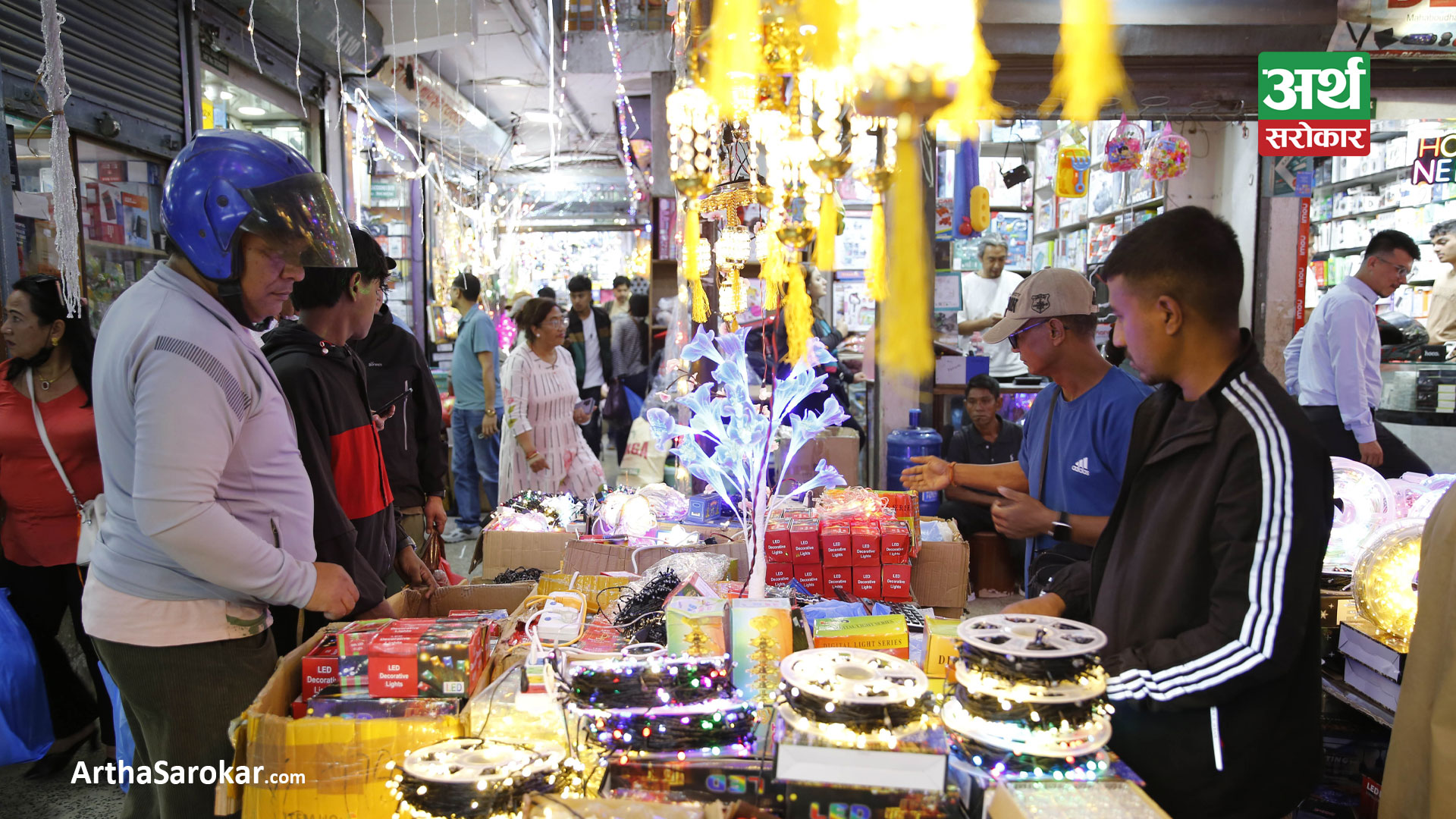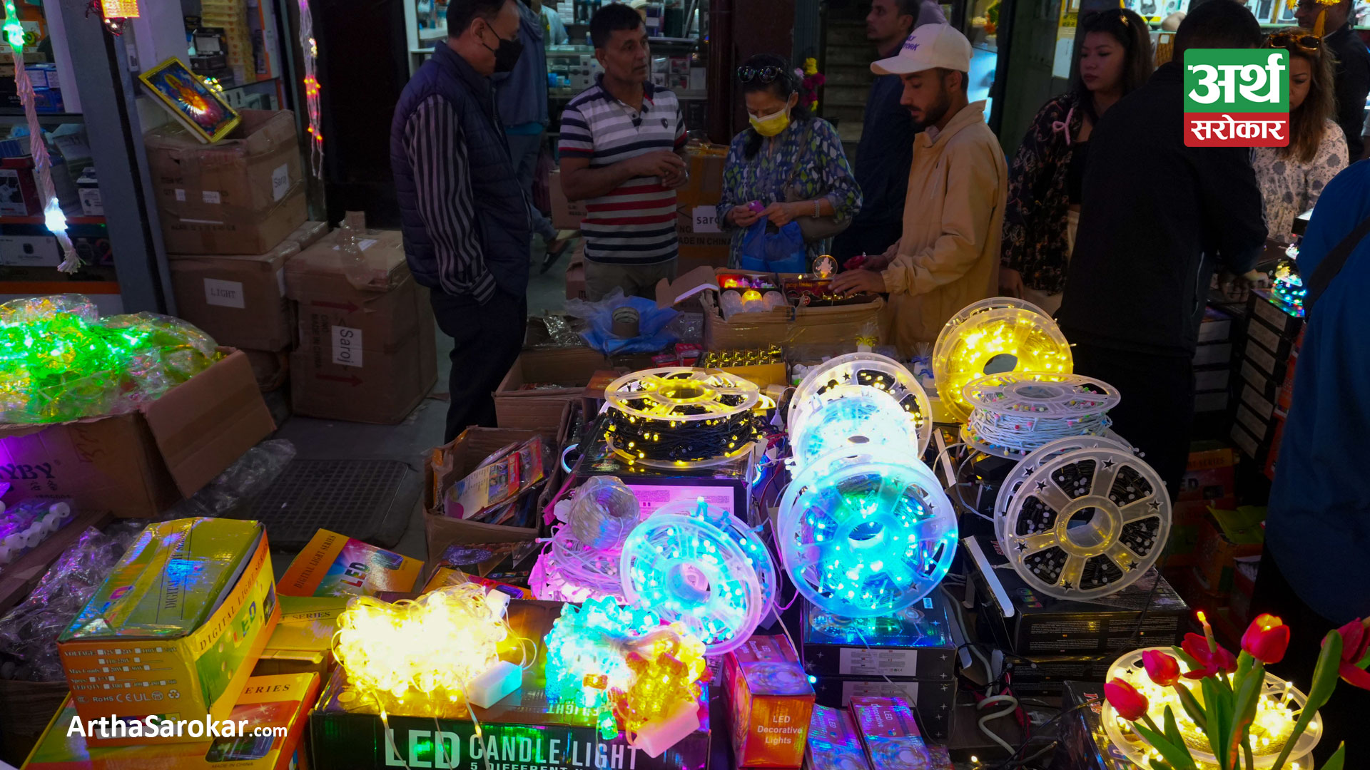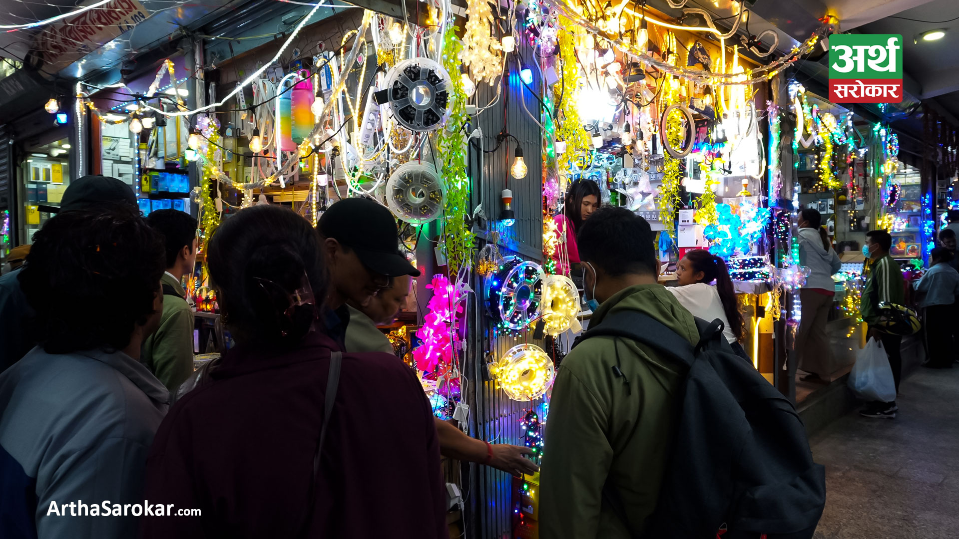 तिहारको लक्ष्मी पूजाका दिन विशेषत घर झिलिमिली बनाउने प्रचलन रहेको छ । उज्यालो घरमा लक्ष्मीको बास हुने विश्वासका साथ पनि अहिले बजारमा झिलिमिली बत्ती व्यापार बढेको छ । बाँकी तस्विरमा हेर्नुहोस्: