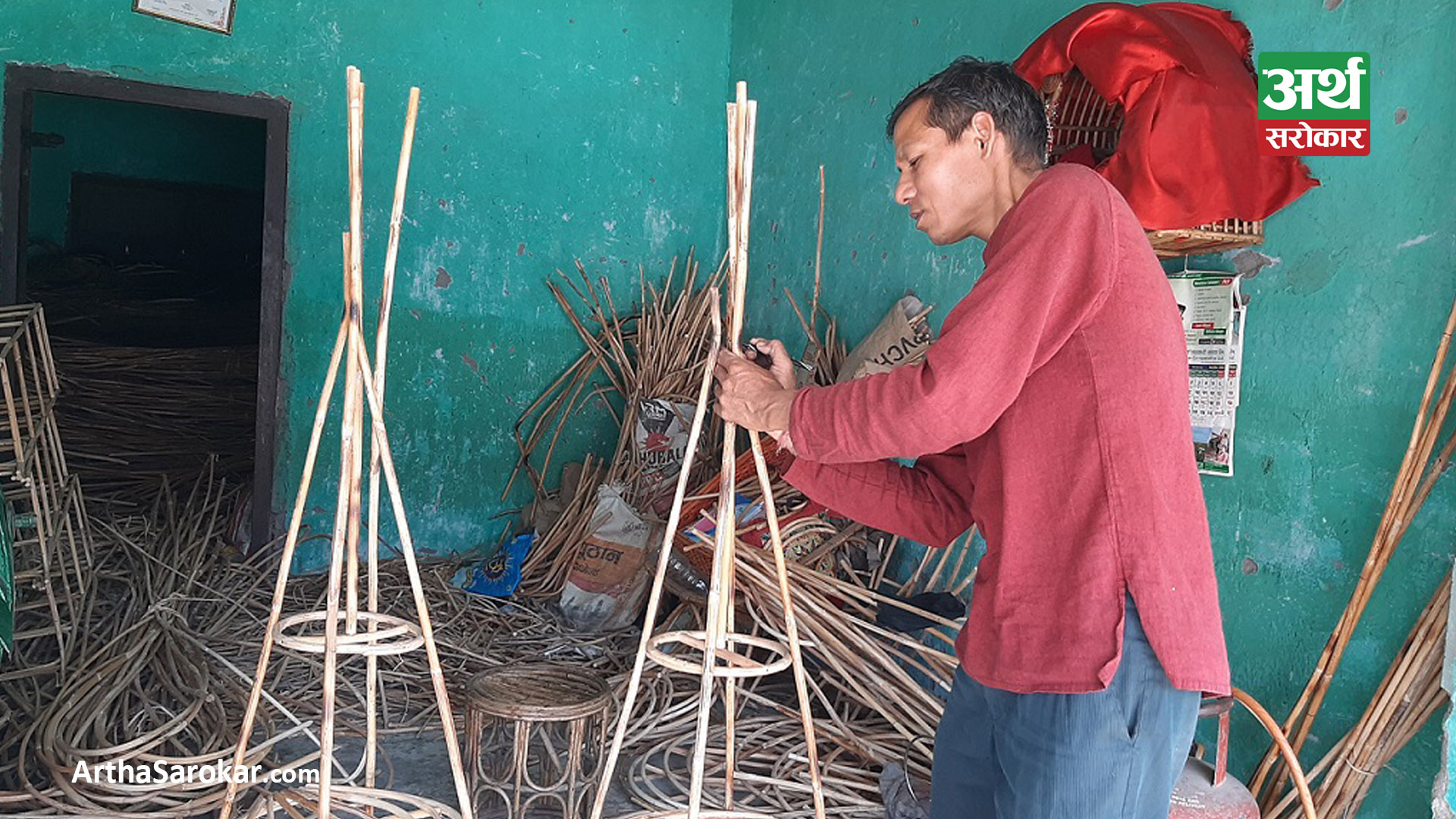 काठमाडौँ । धनगढी उपमहानगरपालिका-४ उत्तरबेहडीका बाधुराम चौधरीले व्यावसायिक रूपमा बेतबाँसका सामग्री बेचेर मासिक रु ७० हजार आम्दानी गर्दै आएका छन् । लामो समयदेखि उनले आफ्नो हस्तकला सीप प्रयोग गरी बेतका विभिन्न सामग्री निर्माण गरी बिक्री गर्दै आएका हुन् ।