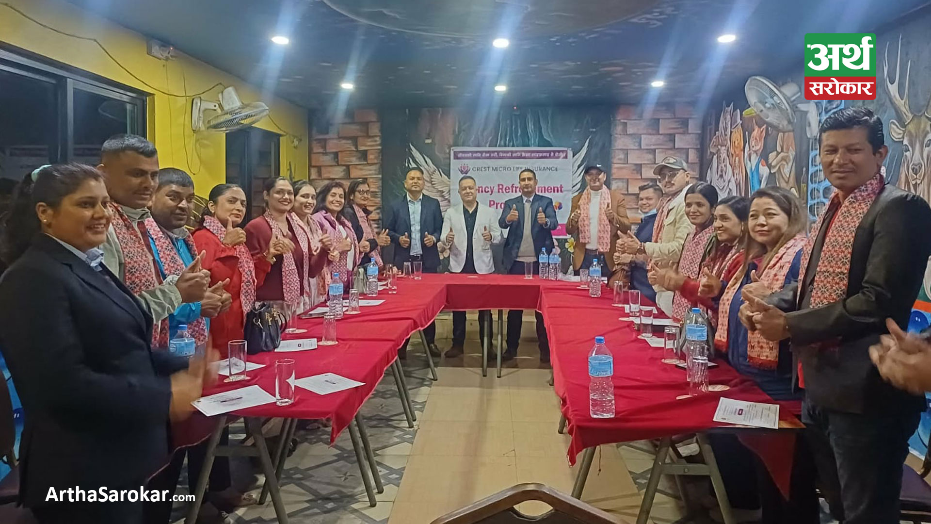 काठमाडौँ । लघु जीवन बीमा कम्पनी क्रेस्ट माइक्रो लाइफ इन्स्योरेन्सको अभिकर्ता अभिमुखिकरण तथा सम्मान कार्यक्रम सम्पन्न भएको छ । कम्पनीका नायव प्रमुख कार्यकारी अधिकृत अभिजित केसी र बजार प्रमुख दिनेश खड्काको उपस्थितिमा अभिकर्ता अभिमुखिकरण तथा सम्मान फेमस तास हाउस रेस्टुरेन्ट, हेटौँडामा सम्पन्न भएको हो ।