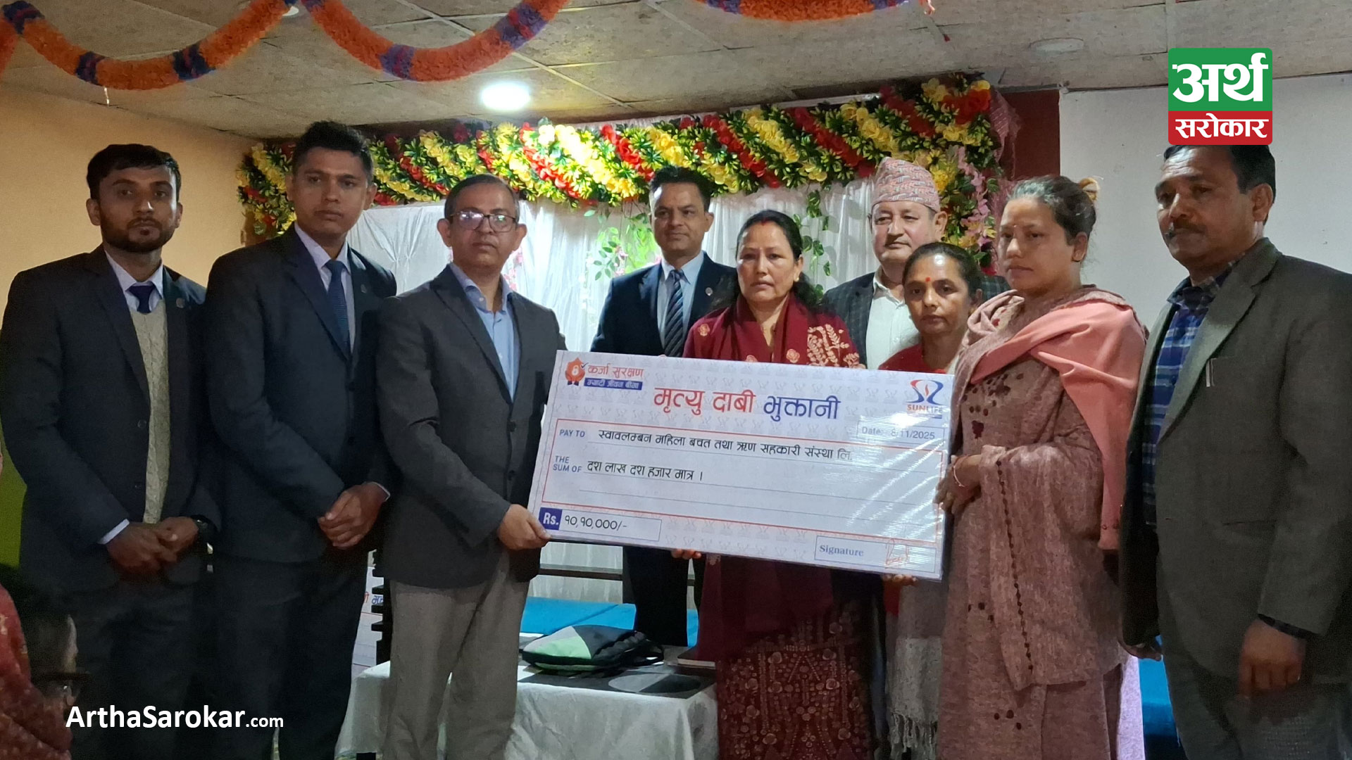 बस्नेतले सहकारी मार्फत १० लाख रुपैयाँ ऋण लिएकोमा सो ऋणको बीमा सन नेपाल लाइफ इन्स्योरेन्स मार्फत गरिएको थियो । ऋणी बस्नेतका श्रीमानको निधन भएपछि बीमा कम्पनीले सहकारी संस्थालाई मृत्यु दाबी बापत १० लाख रुपैयाँ र क्रिया खर्चका लागि थप १० हजार रुपैयाँ भुक्तानी उपलब्ध गराएको हो।