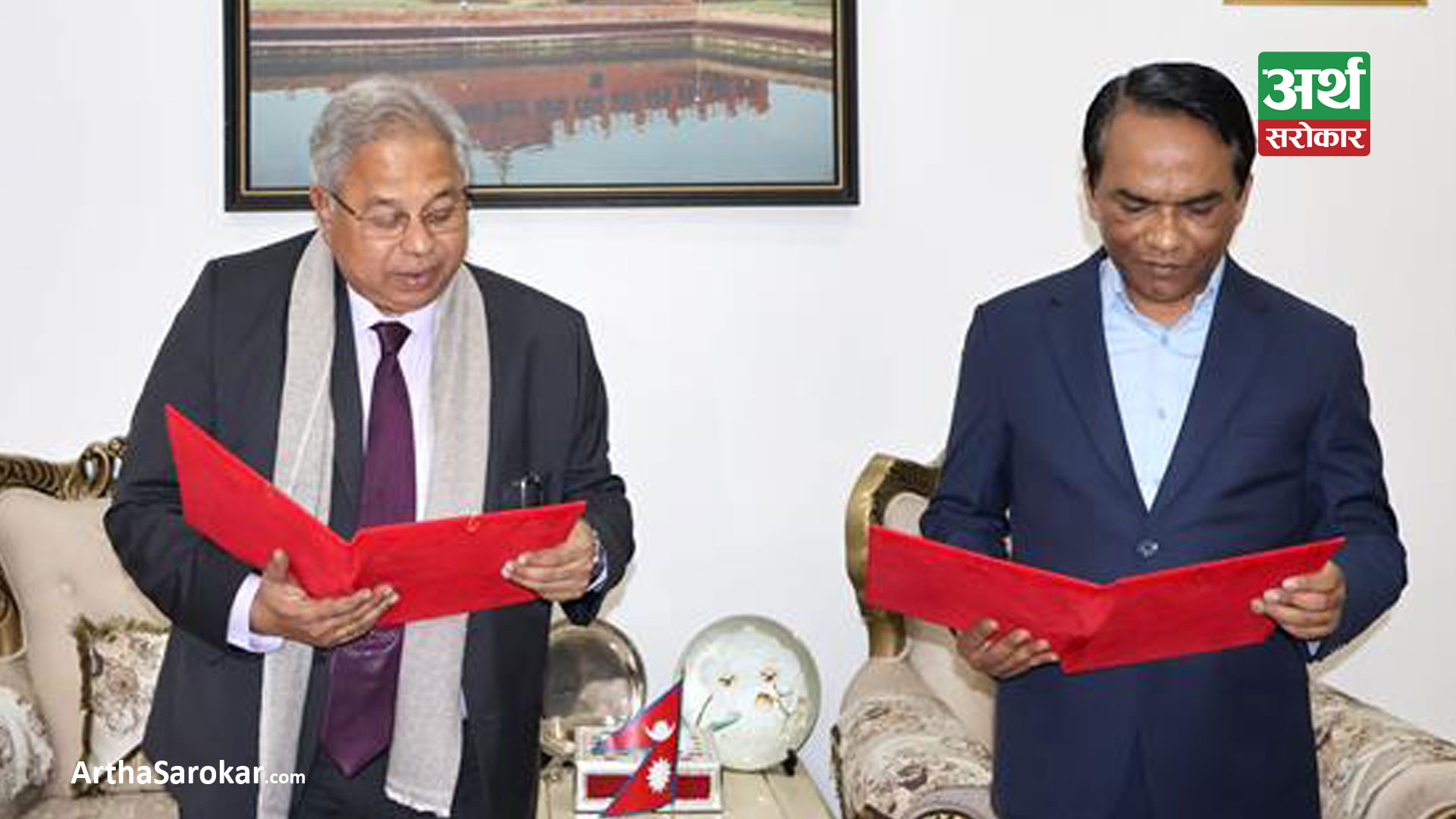 नेपाल राष्ट्र बैंकका गभर्नर प्रा.डा. विश्वनाथ पौडेलले बैंकका नवनियुक्त अध्यक्ष कुंचालाई बालुवाटारस्थित नेपाल राष्ट्र बैंकको केन्द्रीय कार्यालयमा आइतबार आयोजित एक समारोहबीच पद तथा गोपनीयताको शपथ ग्रहण गराएका छन्।