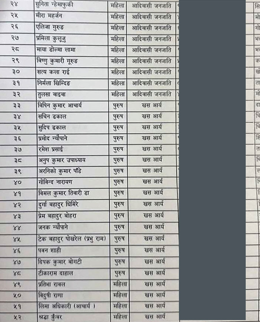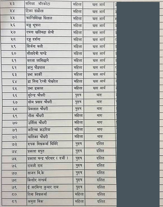 रास्वपाको सूचीमा कलाकार प्रकाश सपुत, डा. त्रिसला गुरुङ, पूर्व मिस नेपाल अनुस्का श्रेष्ठ, क्रिकेटर ज्ञानेन्द्र मल्लको नाम पनि समावेश छ । अरु को को परे सूचीमाः