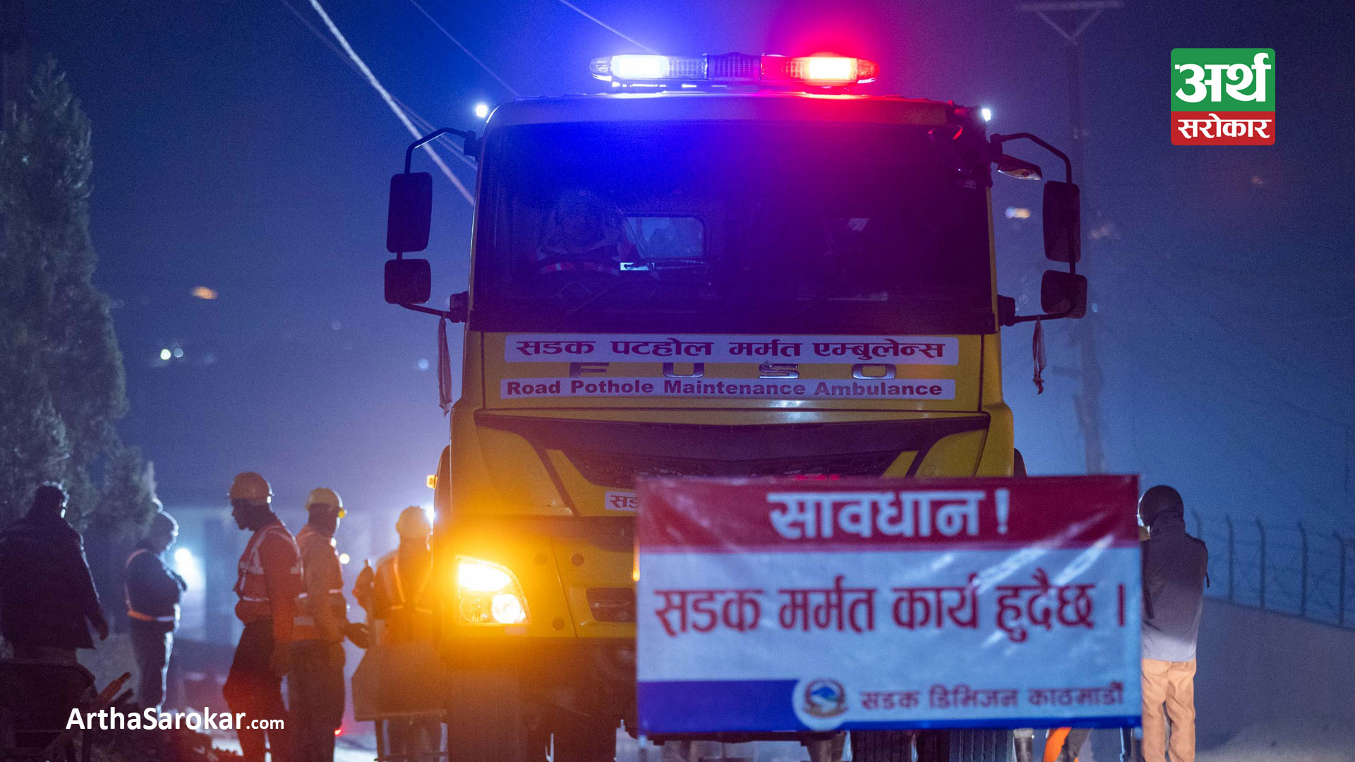 काठमाडौँ । सडक डिभिजन कार्यालय काठमाडौँले सहरी क्षेत्रका सडक खाल्डाखुल्डी–रहित (पोटहोल फ्री) बनाउन विशेष अभियान सुरु गरेसँगै सडक मर्मतका काम तीव्र रूपमा अघि बढाइएको छ । डिभिजन कार्यालयले चक्रपथभित्रका सडकको मर्मत सम्पन्न गरी अब चक्रपथबाहिरका सडक मर्मततर्फ ध्यान केन्द्रित गरेको जनाएको छ । नियमित रूपमा मर्मत हुँदै आएका सडकका खाल्डाखुल्डी तत्काल सुधार गर्नका लागि कार्यालयले ‘सडक पोटहोल मर्मत एम्बुलेन्स’ सेवा सुरु गरेको हो ।