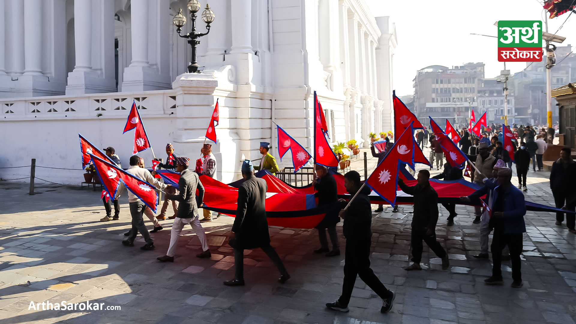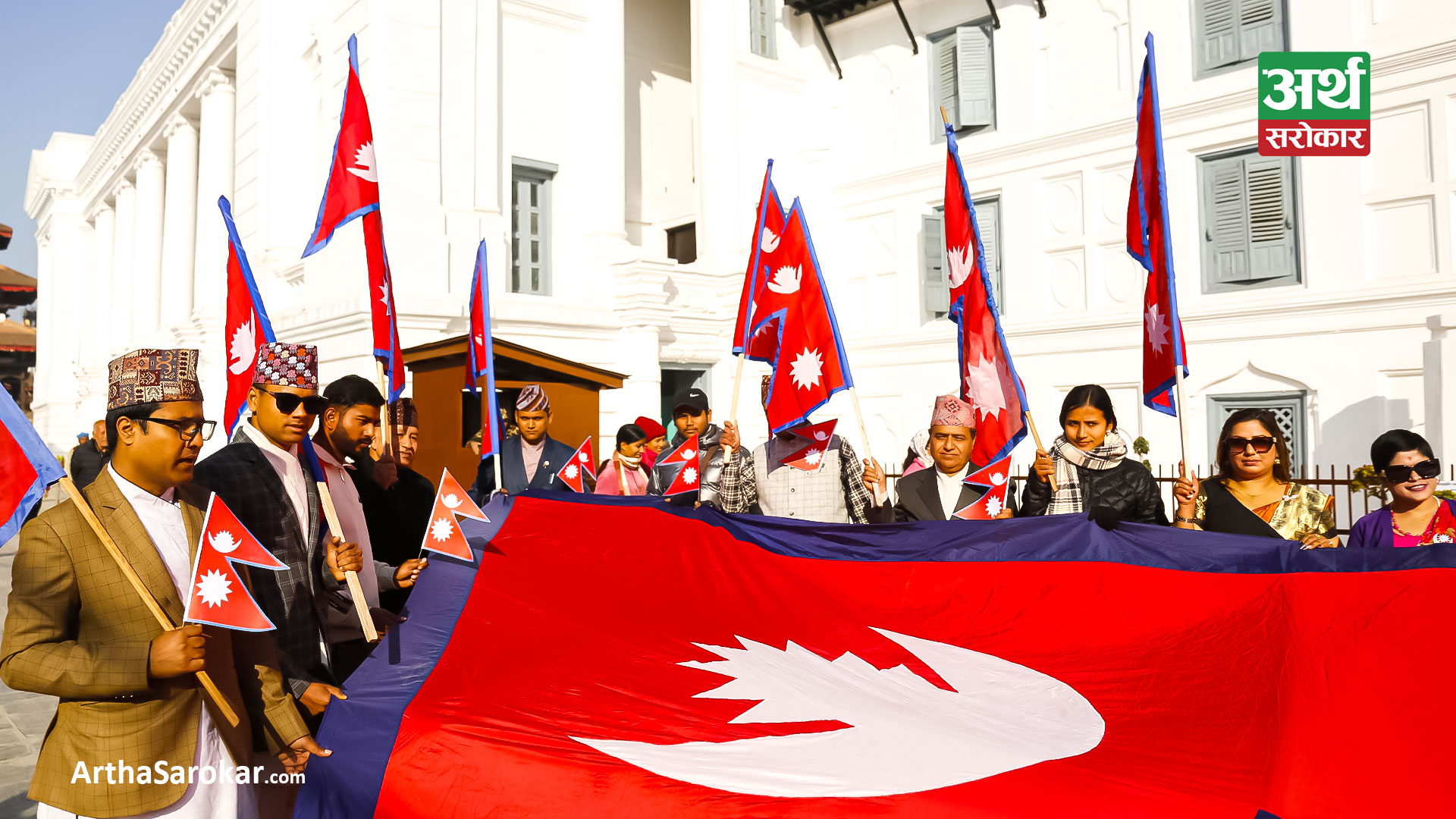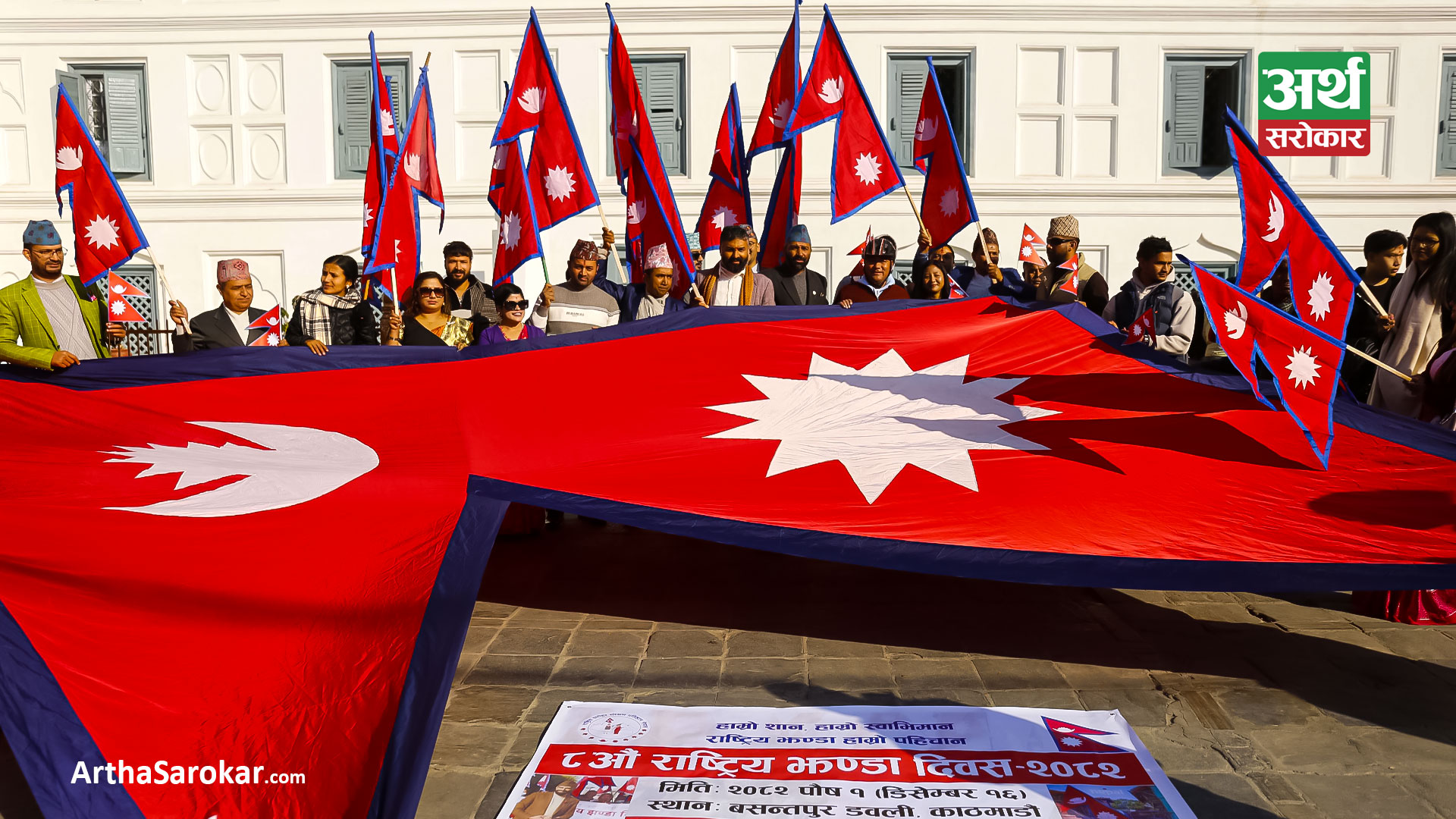 हरेक वर्ष पुस १ गतेका दिनलाई राष्ट्रिय झण्डा दिवसका रुपमा मनाइन्छ । आज काठमाडौंको बसन्तपुर दरबार स्क्वायरमा नेपालको राष्ट्रिय झण्डा बोकेर र्यालीसमेत गरिएको छ । बाँकी तस्विरमा हेर्नुहोस्: