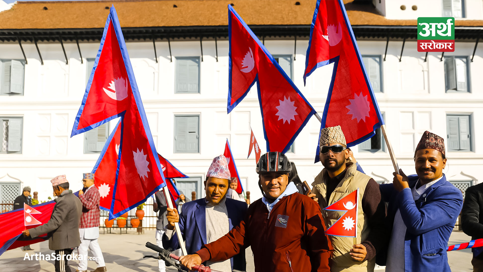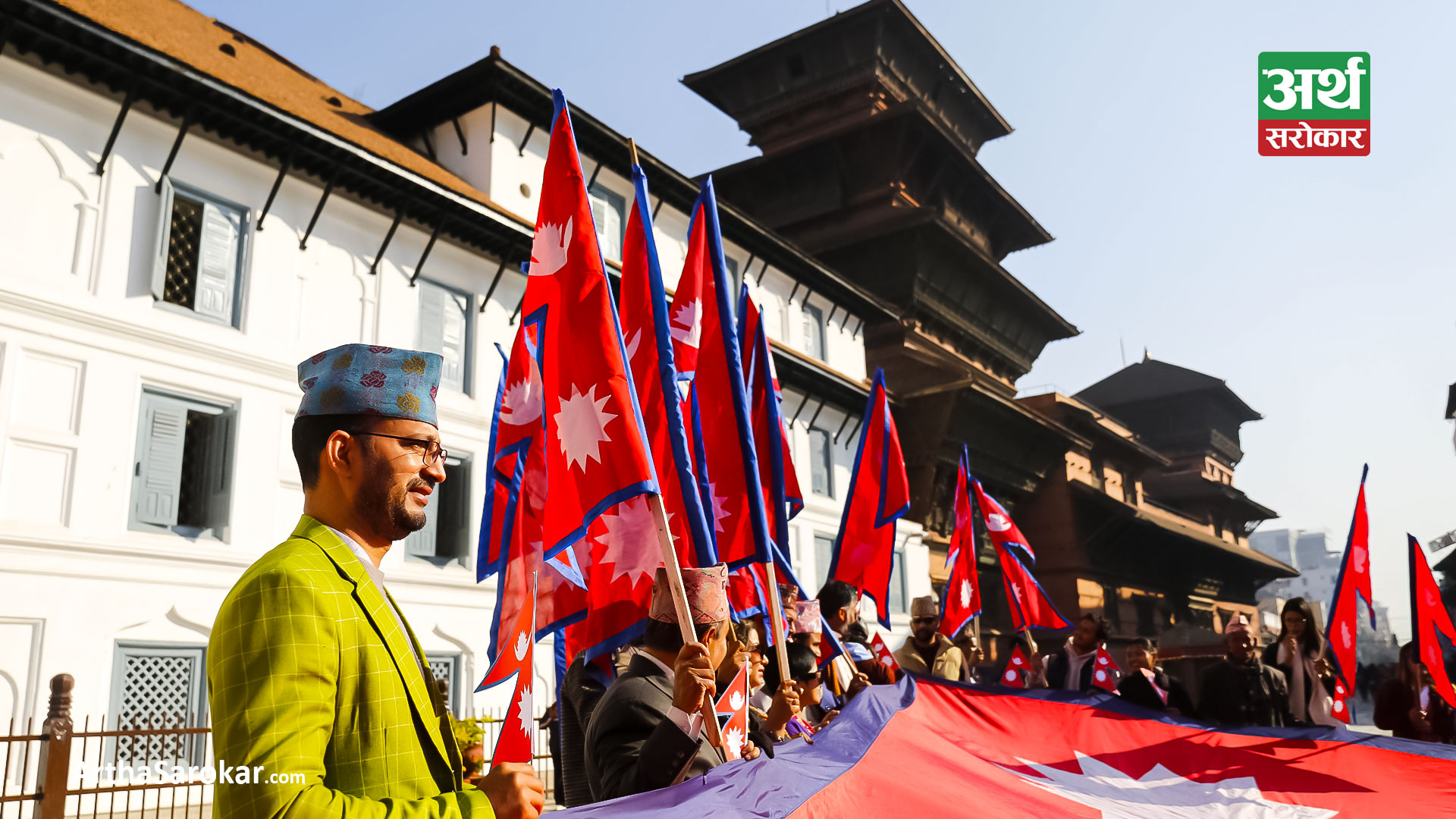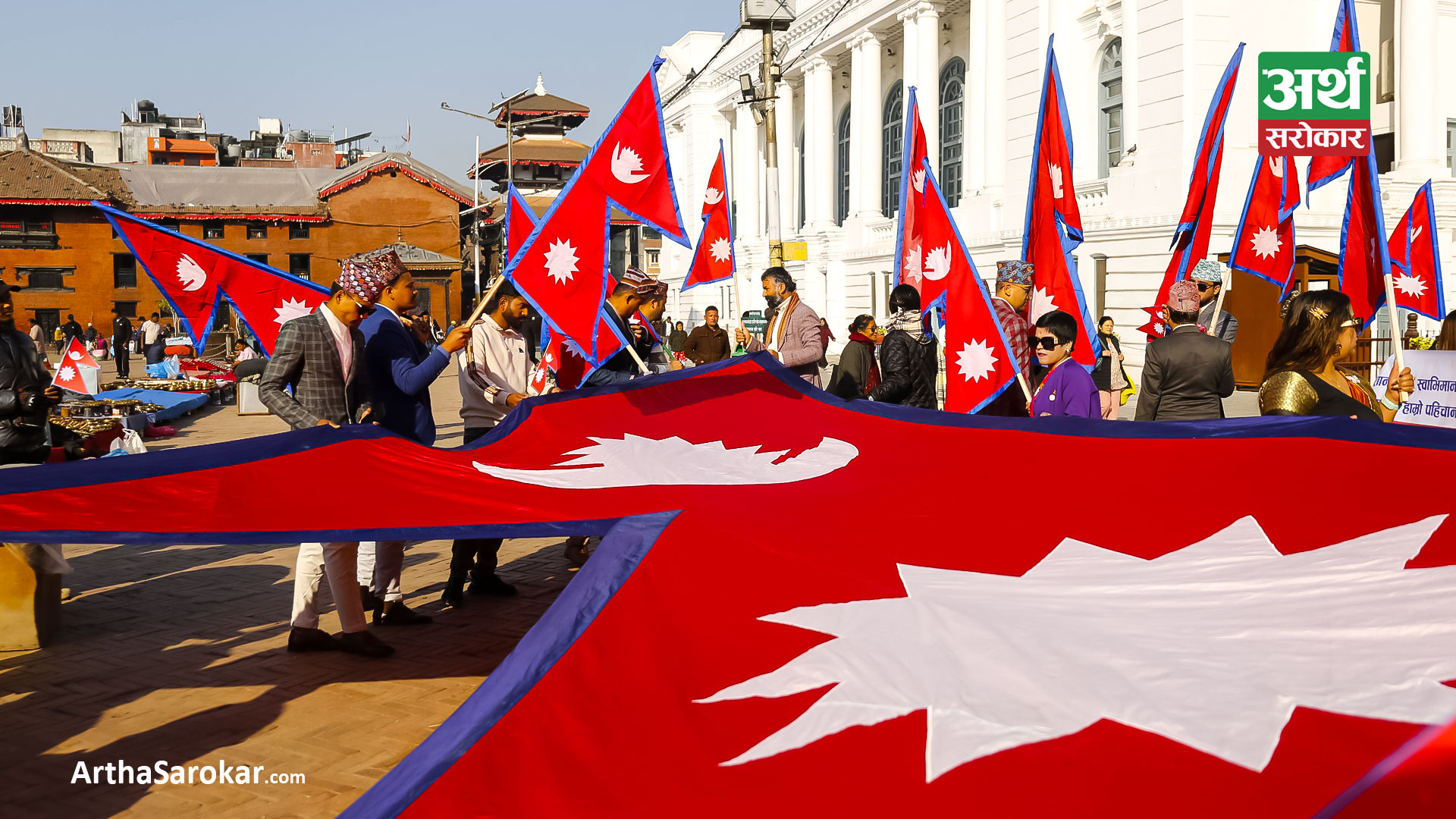 हरेक वर्ष पुस १ गतेका दिनलाई राष्ट्रिय झण्डा दिवसका रुपमा मनाइन्छ । आज काठमाडौंको बसन्तपुर दरबार स्क्वायरमा नेपालको राष्ट्रिय झण्डा बोकेर र्यालीसमेत गरिएको छ । बाँकी तस्विरमा हेर्नुहोस्: