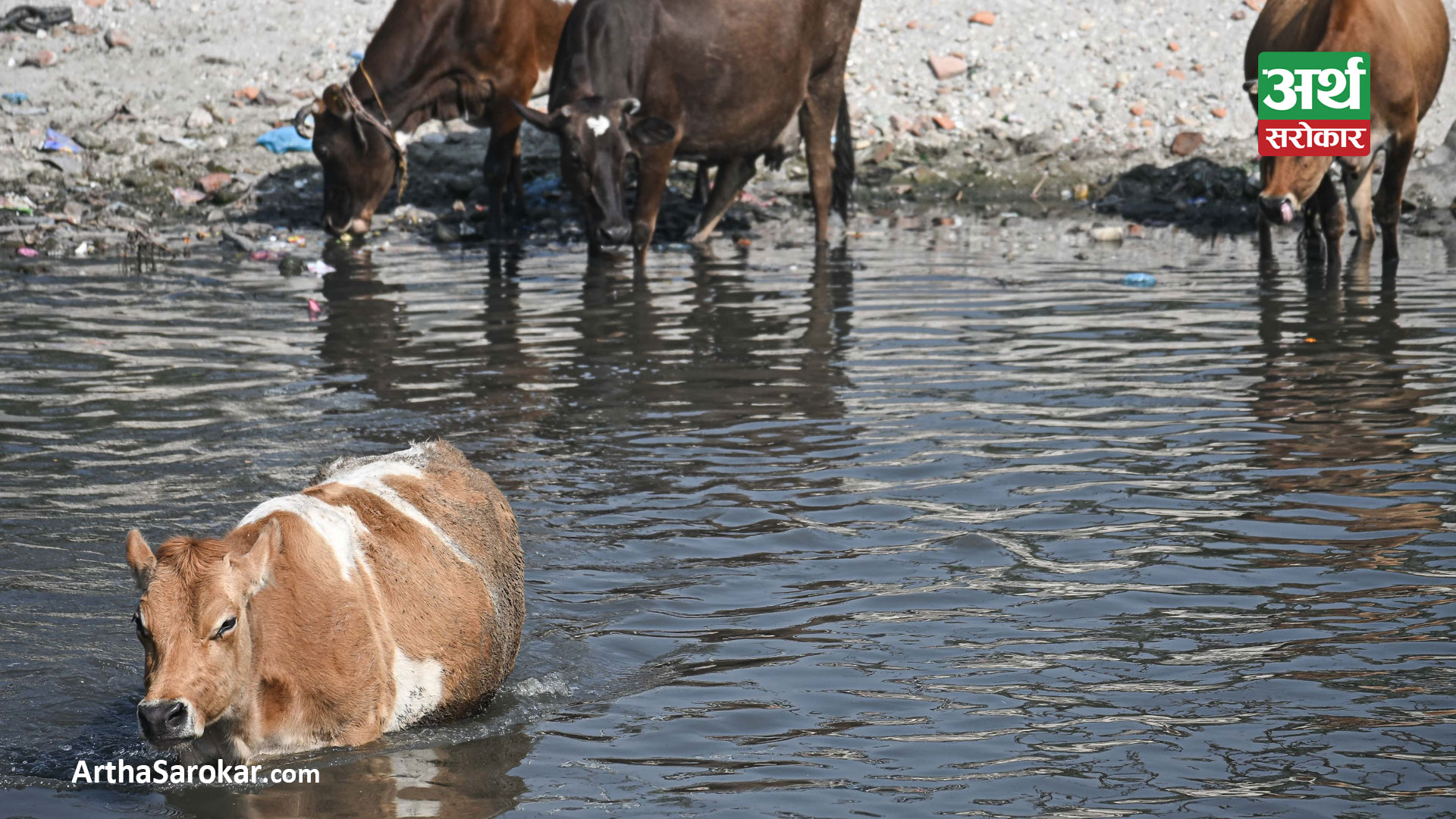 कहिलेकाहीँ नदीको किनार वा फोहोरबीच कुकुर, चराहरू, गाई भैँसीजस्ता जनावरहरू पनि देखिन्छन्, जसले समस्या कति जटिल बन्दै गएको छ भन्ने संकेत दिन्छ । प्रदूषण बढ्दै जाँदा उपत्यकाका नदीहरूको पानी गुणस्तर झनै कमजोर बन्दै गएको छ, जसले वातावरणीय सन्तुलन र जनस्वास्थ्य दुवैलाई दीर्घकालीन जोखिममा पुर्याइरहेको छ । बाँकी तस्विरमा हेर्नुहोस्ः