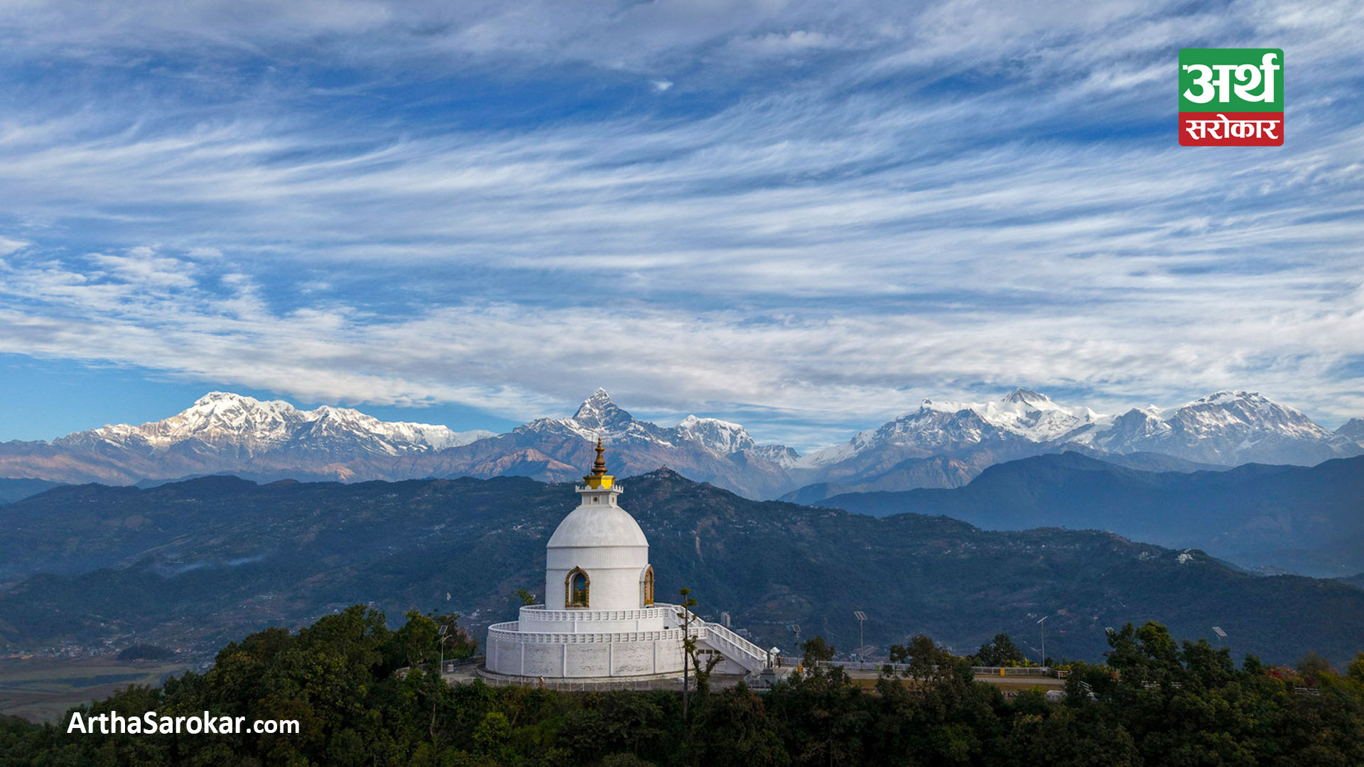 काठमाडौँ । विश्व शान्ति स्तूप पोखरा उपत्यकाको प्रसिद्ध धार्मिक तथा पर्यटकीय स्थल बनेको छ । यो स्तूप फेवातालको दक्षिणी छेउमा रहेको अन्नपूर्ण डाँडामा अवस्थित छ ।
