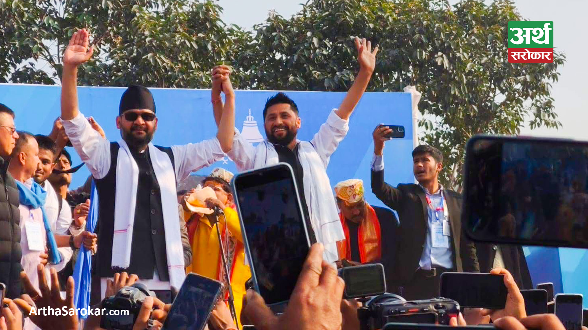 काठमाडौँ । राष्ट्रिय स्वतन्त्र पार्टी (रास्वपा)का सभापति रवि लामिछाने र वरिष्ठ नेता बालेन्द्र शाह (बालेन) जनकपुरको चुनावी सभामा पुगेका छन् । रवि र बालेन एउटै ‘ड्रेसअप’मा चुनावी सभा पुगेका हुन् ।