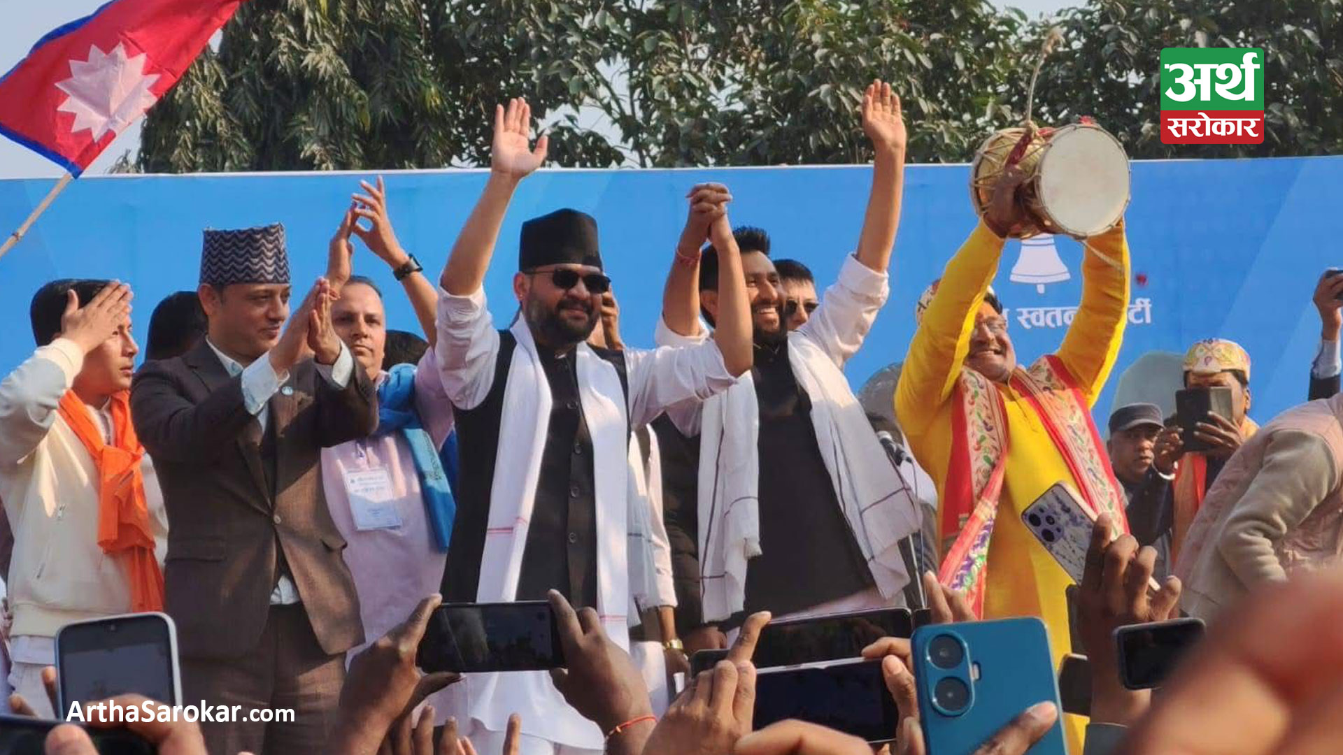 सभामा अमरेशकुमार सिंह पनि पुगेका छन् । रवि लामिछाने र बालेन शाह स्टेजमा उक्लिँदा समर्थकहरुले रवि र बालेनको पक्षमा चर्को नारा लगाएका थिए । बाँकी तस्विरमा हेर्नुहोस्ः
