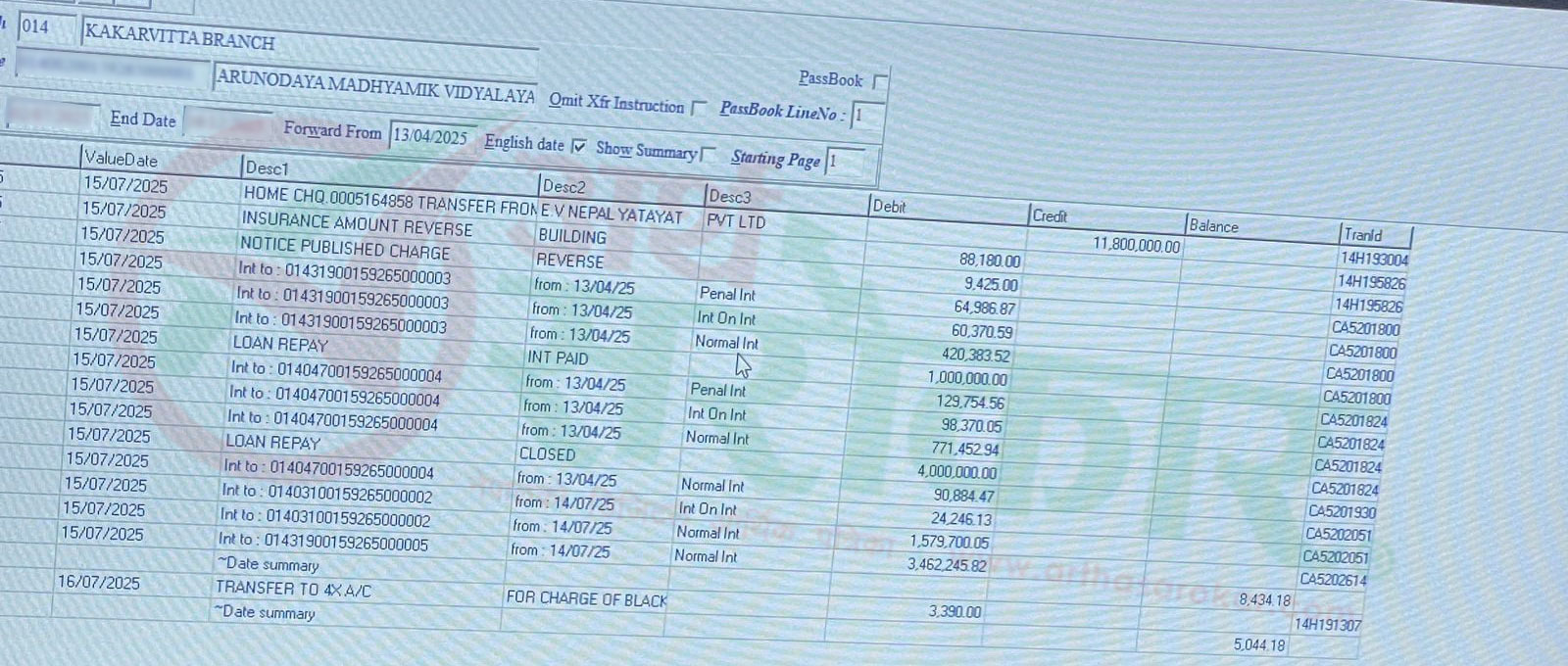 इभि नेपाललाई बैंकले १ करोड १८ लाख ऋण स्वीकृत गरी असार मसान्तमा लगानी गरेको भए पनि बैंकको नाममा कम्पनीको सम्पत्ति रोक्का नभएको र सो रकम प्रयोग गरी स्कुलको ऋण तिरेको पाइएको छ ।
