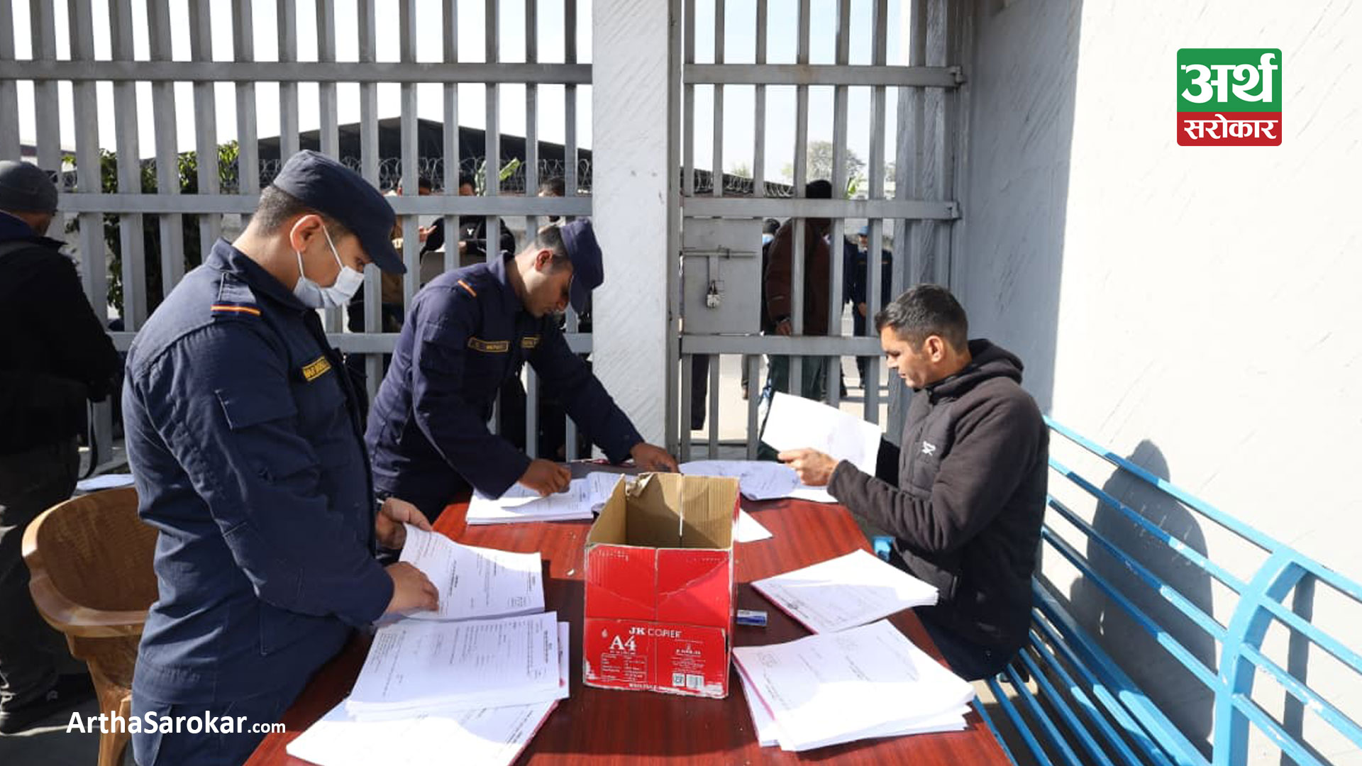 भर्ना खुलेपछि युवाहरु फारम भर्न भद्रकालीस्थित काठमाडौं प्रहरी परिसरमा लाइन लागेका छन् । यस पटकको निर्वाचनमा १ लाख ३३ हजार ९८० जना म्यादी प्रहरी भर्ना गर्ने तयारी गरिएको छ । बाँकी तस्विरमा हेर्नुहोस्: