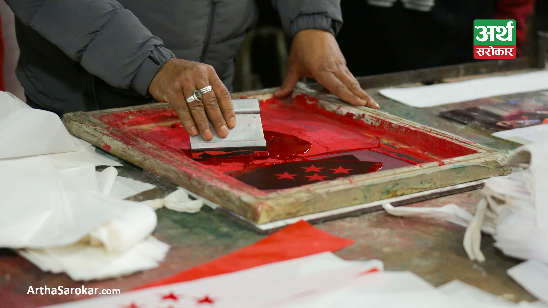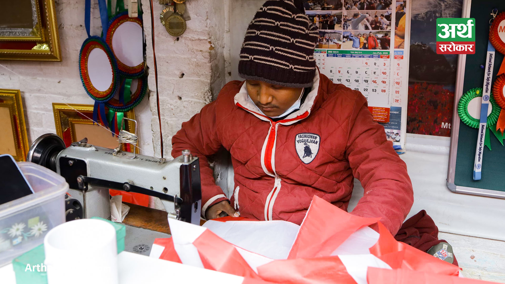 चुनाव नजिकियो तर छैन यसपाली झन्डाको व्यापार, व्यापारी भन्छन्- ‘खासै अर्डर नै आउँदैन’ (तस्विरहरु)