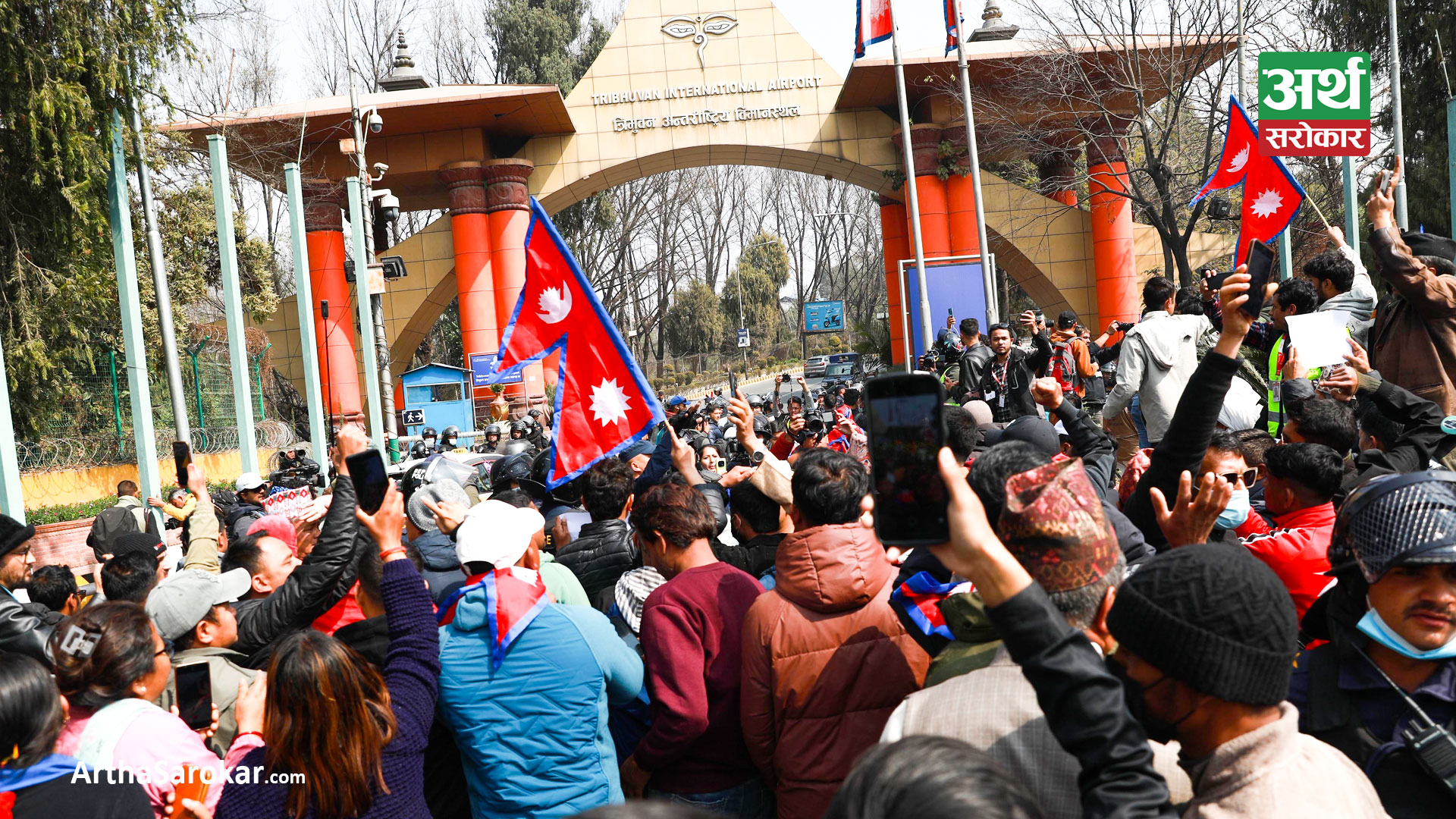 दुर्गाको अटेरी: प्रशासनले ‘भेला नगर्नू’ भन्दाभन्दै हुल लिएर विमानस्थल पुगे (तस्विरहरू)