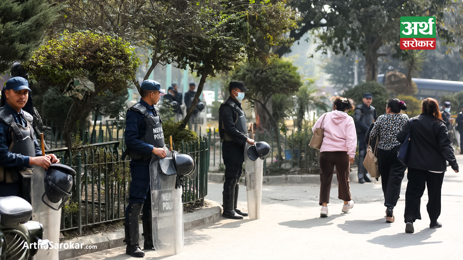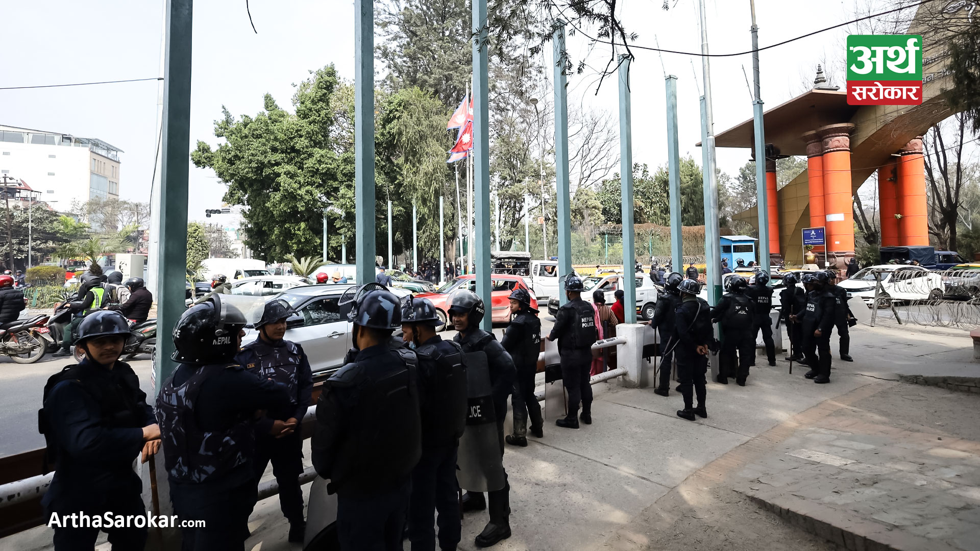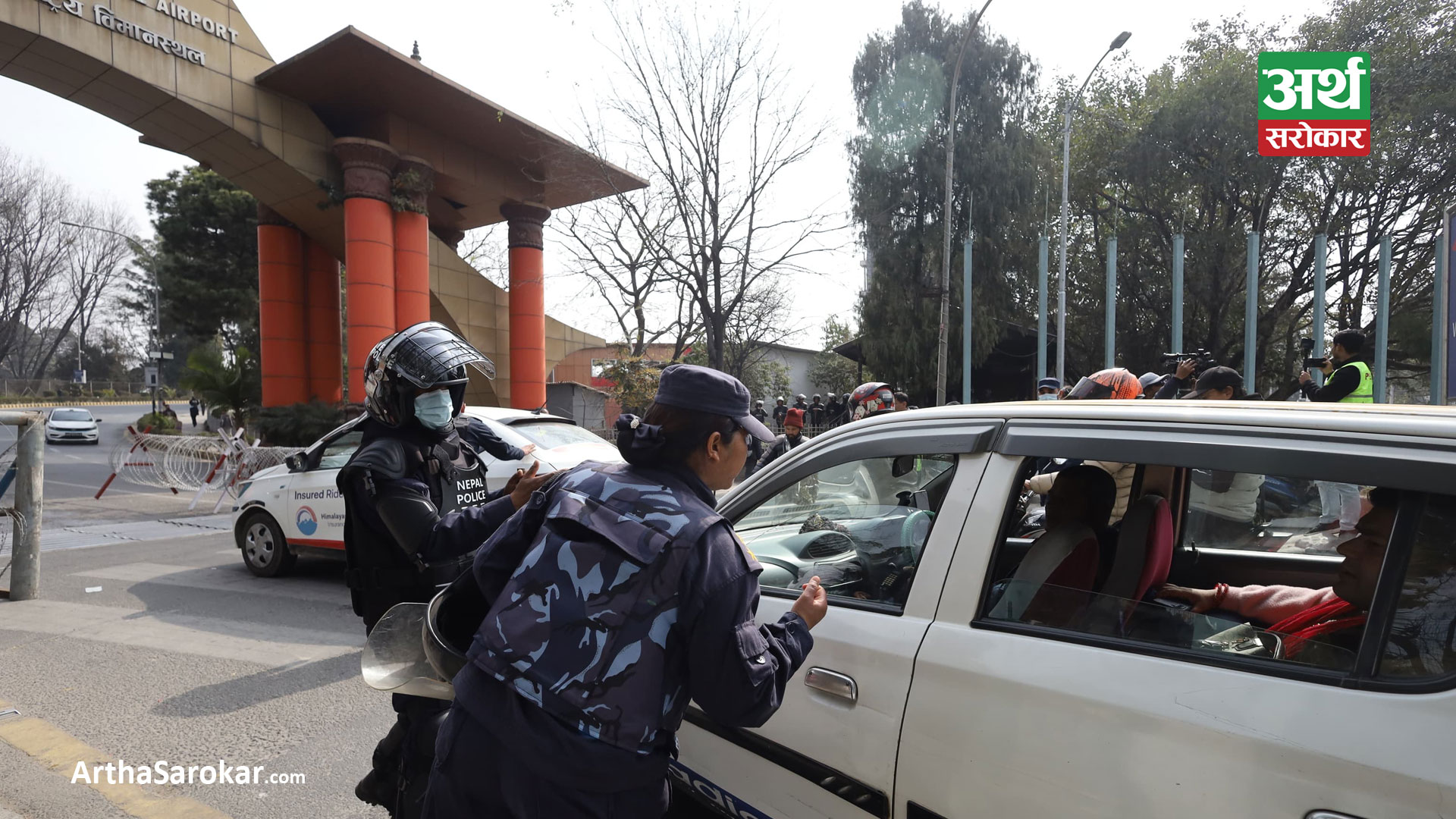 काठमाडौँ । काठमाडौंको त्रिभुवन अन्तर्राष्ट्रिय विमानस्थल आसपास क्षेत्रमा सुरक्षा व्यवस्था कडा पारिएको छ । विमानस्थलमा पूर्वराजा ज्ञानेन्द्र शाहको स्वागतका लागि मानिसहरु भेला हुने भएपछि सुरक्षा व्यवस्था कडा गरिरहेका हो ।