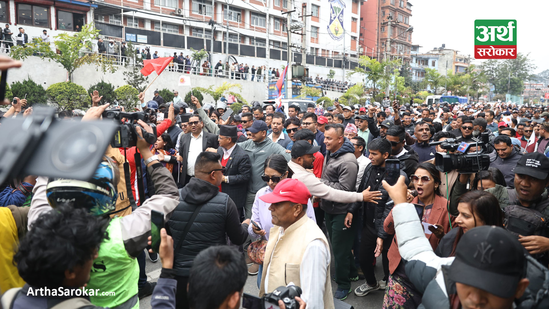 प्रदर्शनमा सहभागी कार्यकर्ताहरुले सरकार विरोधी नारा लगाउँदै अध्यक्ष ओलीलाई राजनीतिक प्रतिशोधका आधारमा थुनामा राखिएको आरोप लगाएका छन् । उनीहरुले अध्यक्ष ओलीलाई तत्काल रिहा गर, राजनीतिक प्रतिशोध बन्द गर जस्ता नारा लेखिएका प्लेकार्डहरु बोकेका छन् ।