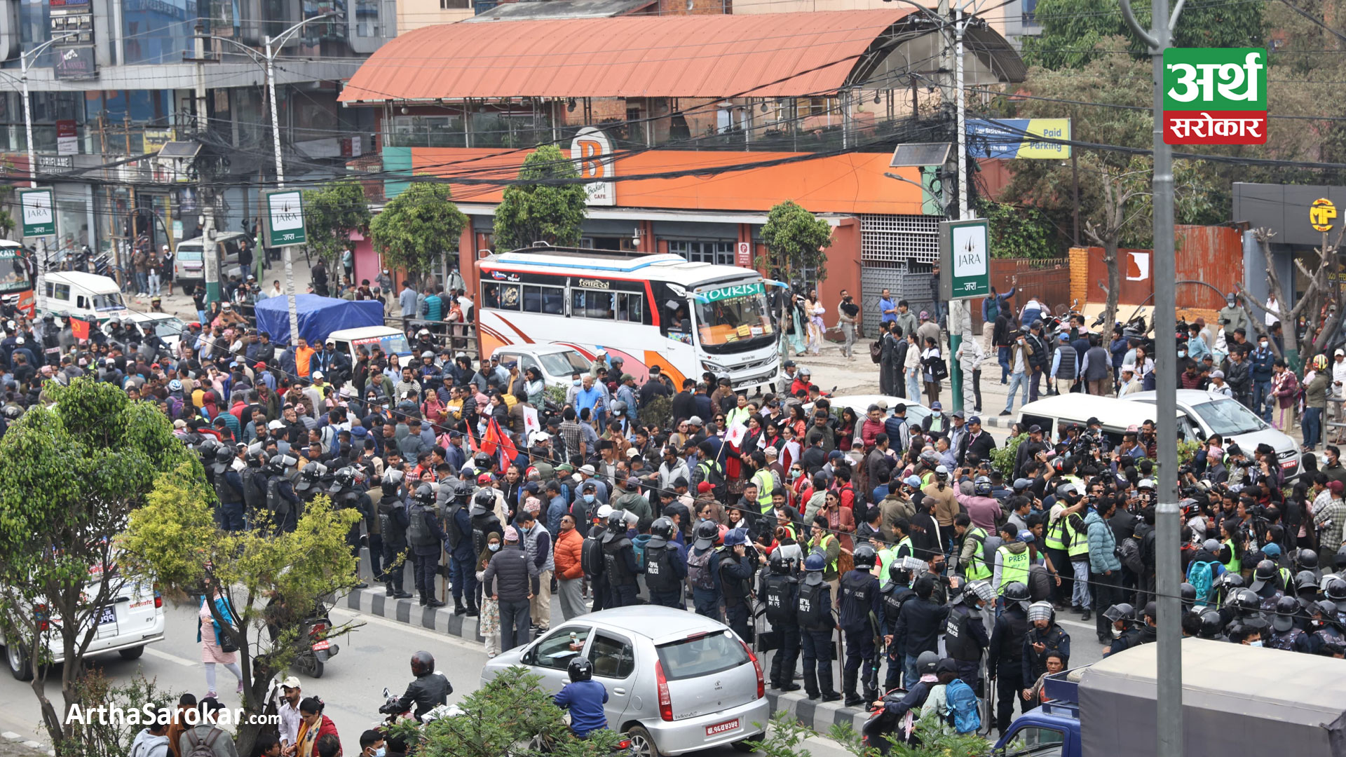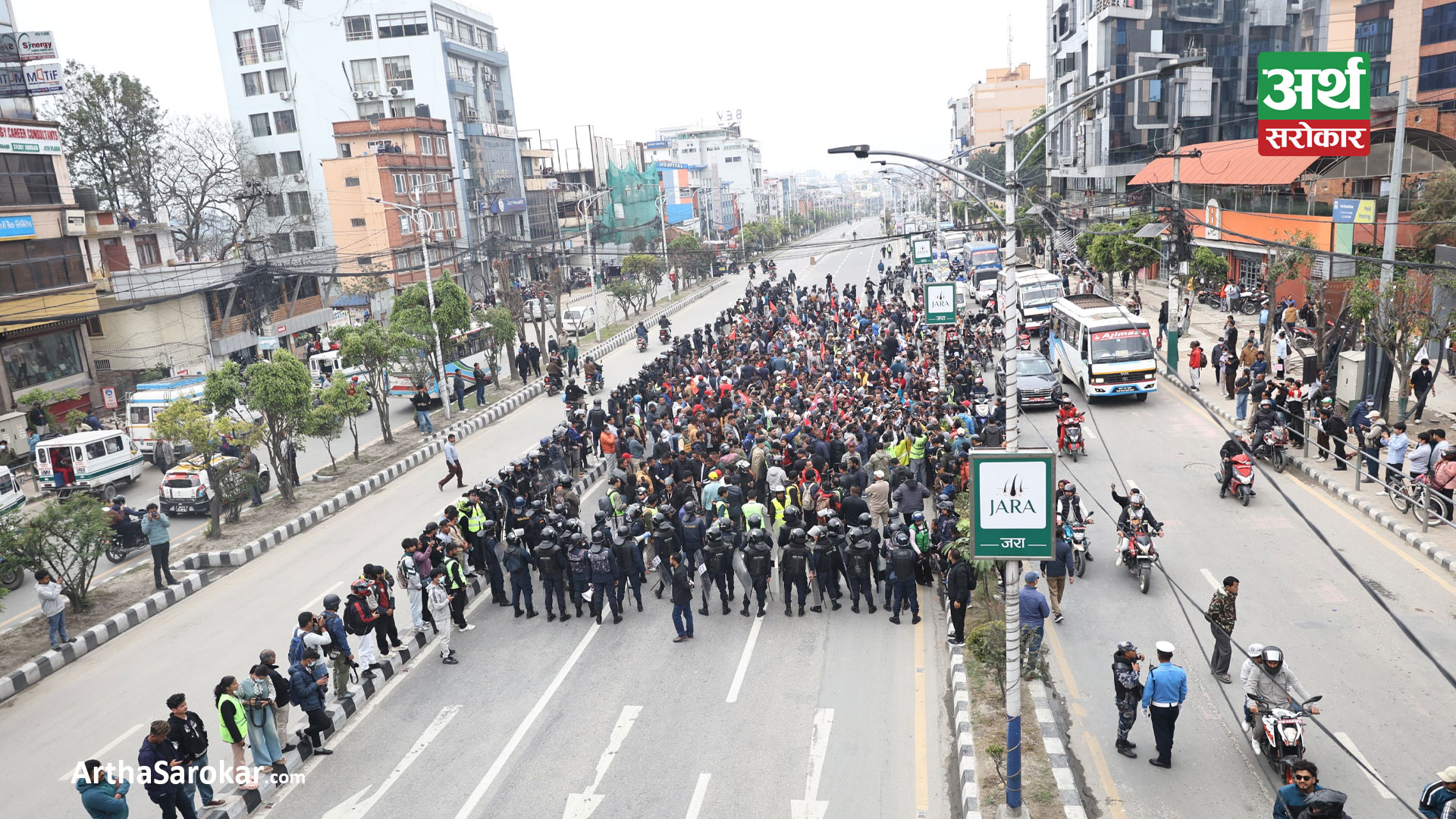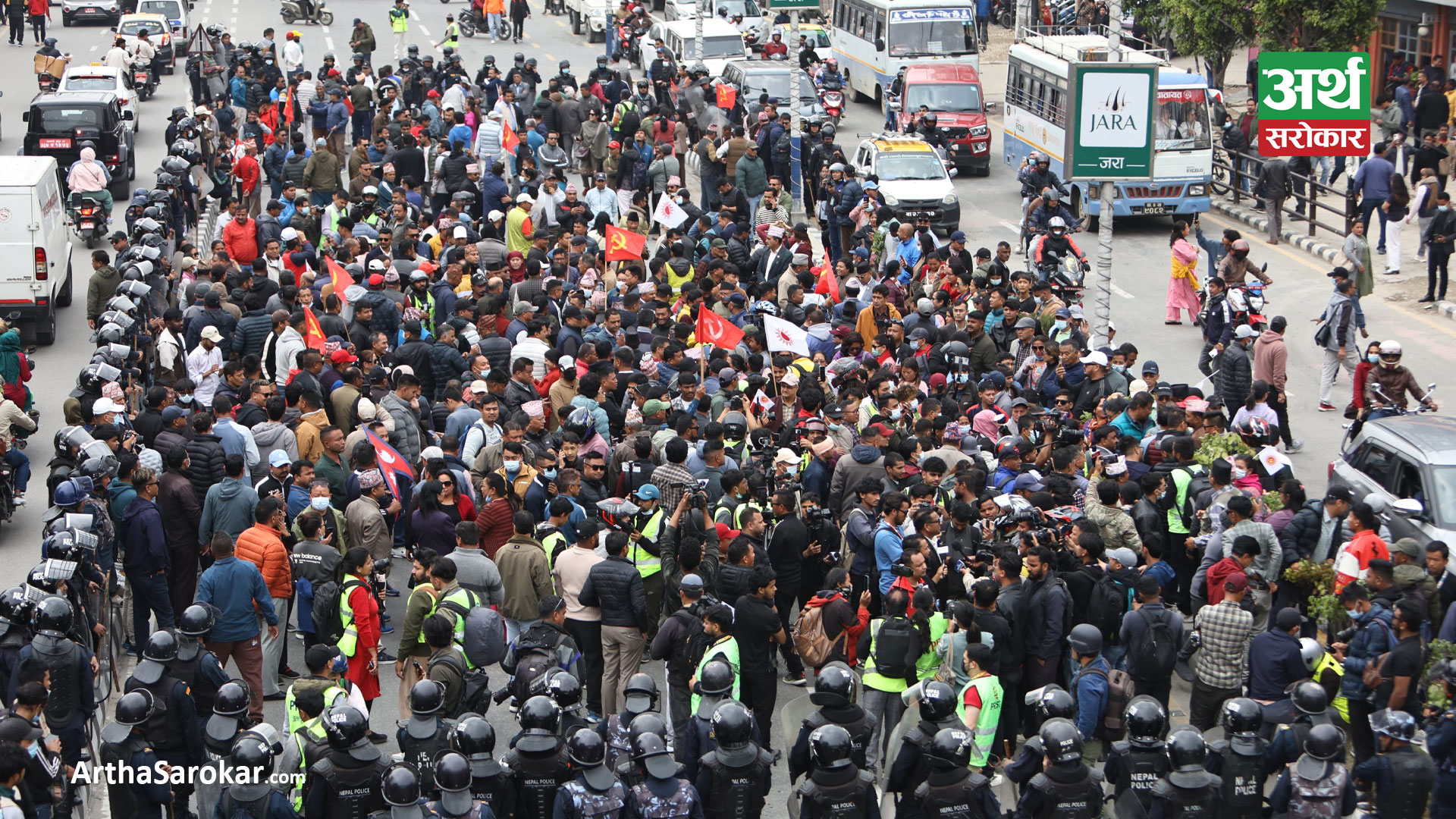 काठमाडौँ । नेकपा एमालेले आज पनि राजधानीको माईतीघर मण्डलामा विरोध प्रदर्शन गरेको छ । पार्टी अध्यक्ष केपी शर्मा ओलीको रिहाईको माग गर्दै एमालेका भ्रातृ संगठनहरुले लगातार प्रदर्शन जारी राखेका हुन् ।