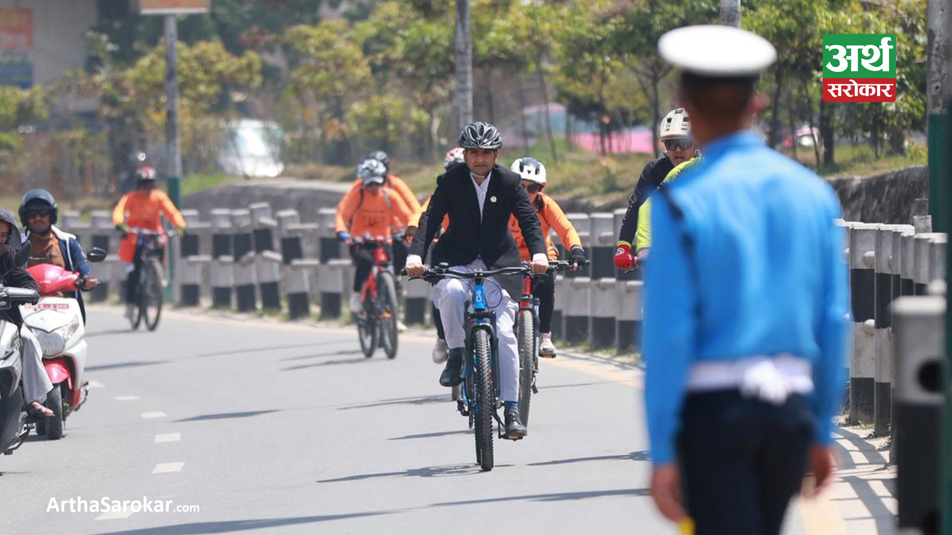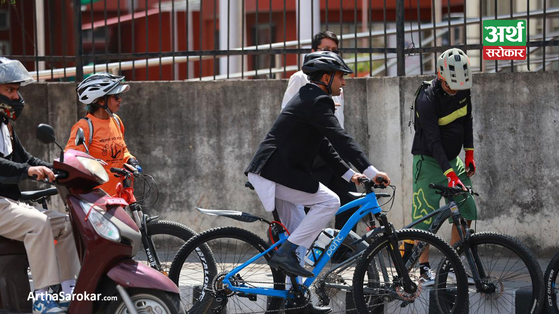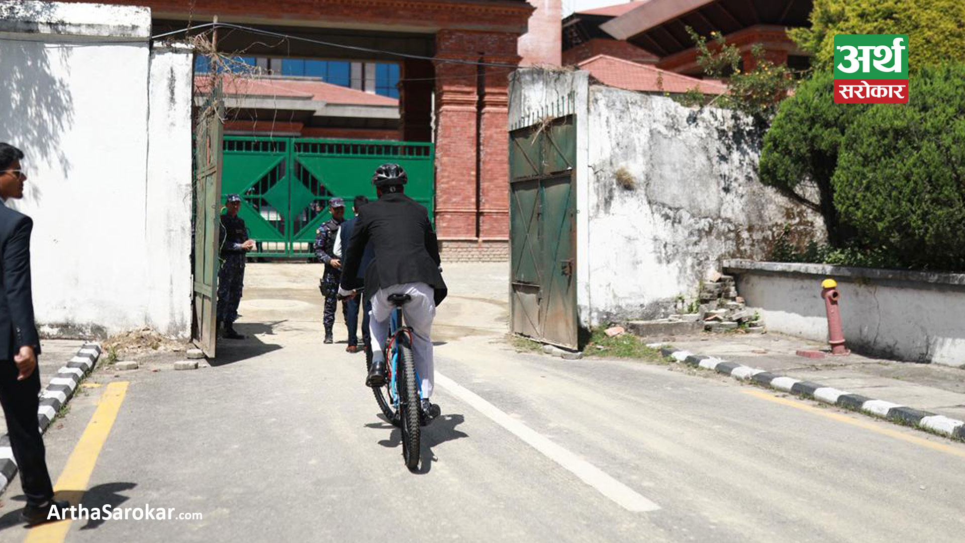 उनी भक्तपुरको लोकन्थलीबाट साइकलमा सिंहदरबार पुगेका हुन् । बाँकी तस्विरमा हेर्नुहोस्: