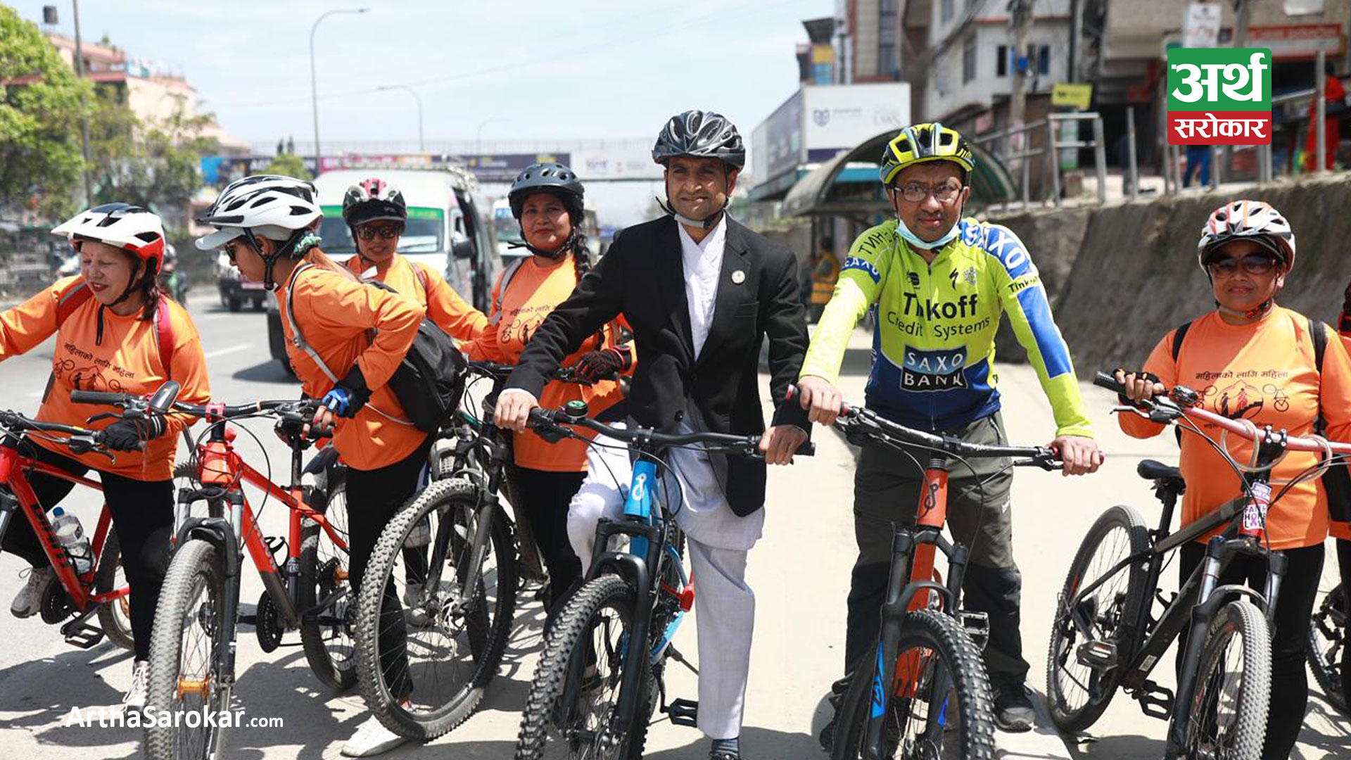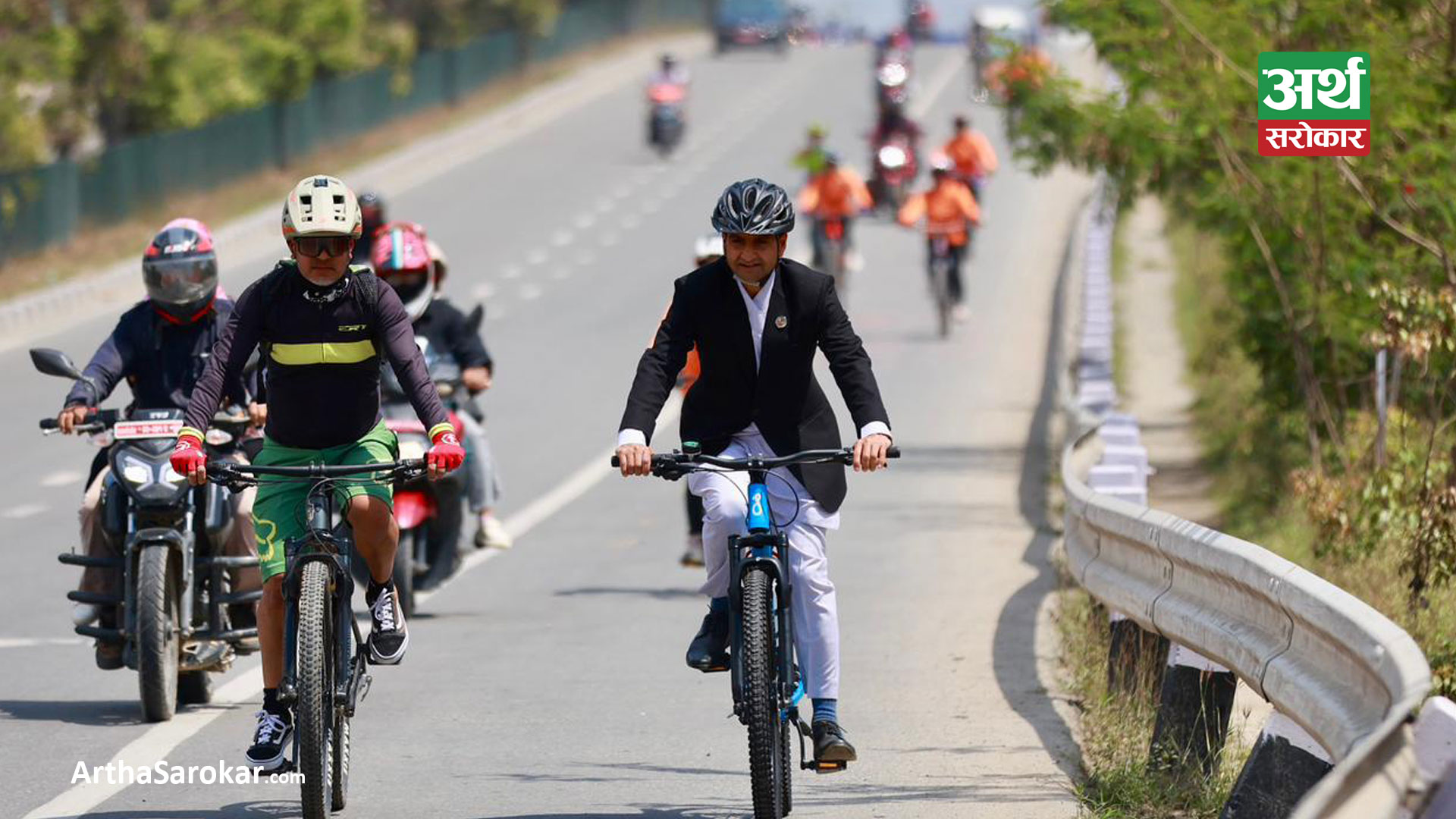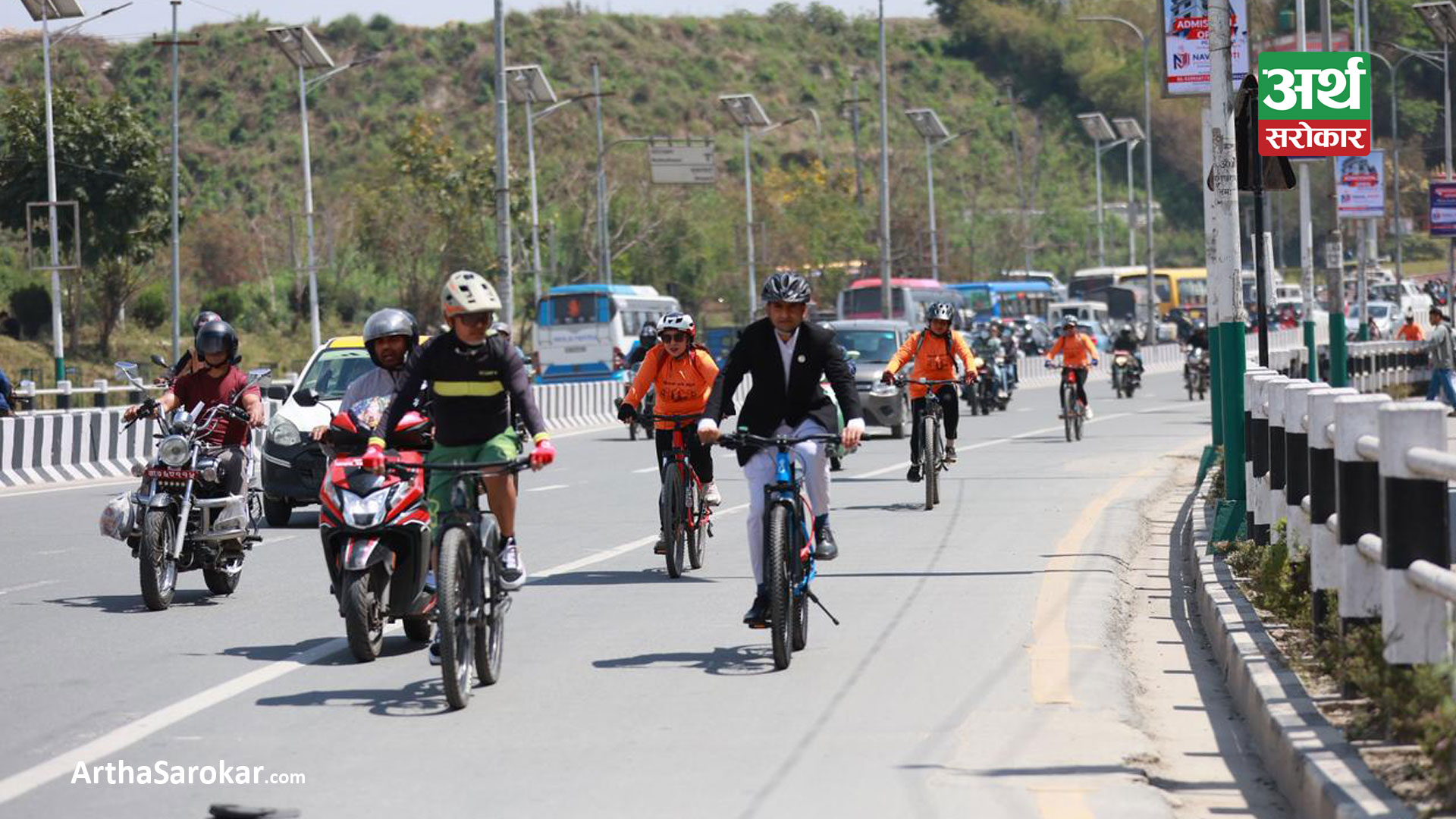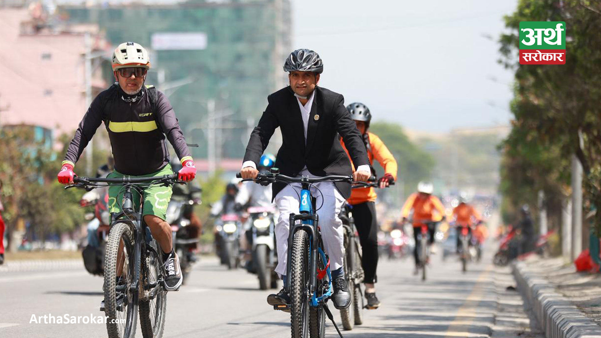 उनी भक्तपुरको लोकन्थलीबाट साइकलमा सिंहदरबार पुगेका हुन् । बाँकी तस्विरमा हेर्नुहोस्: