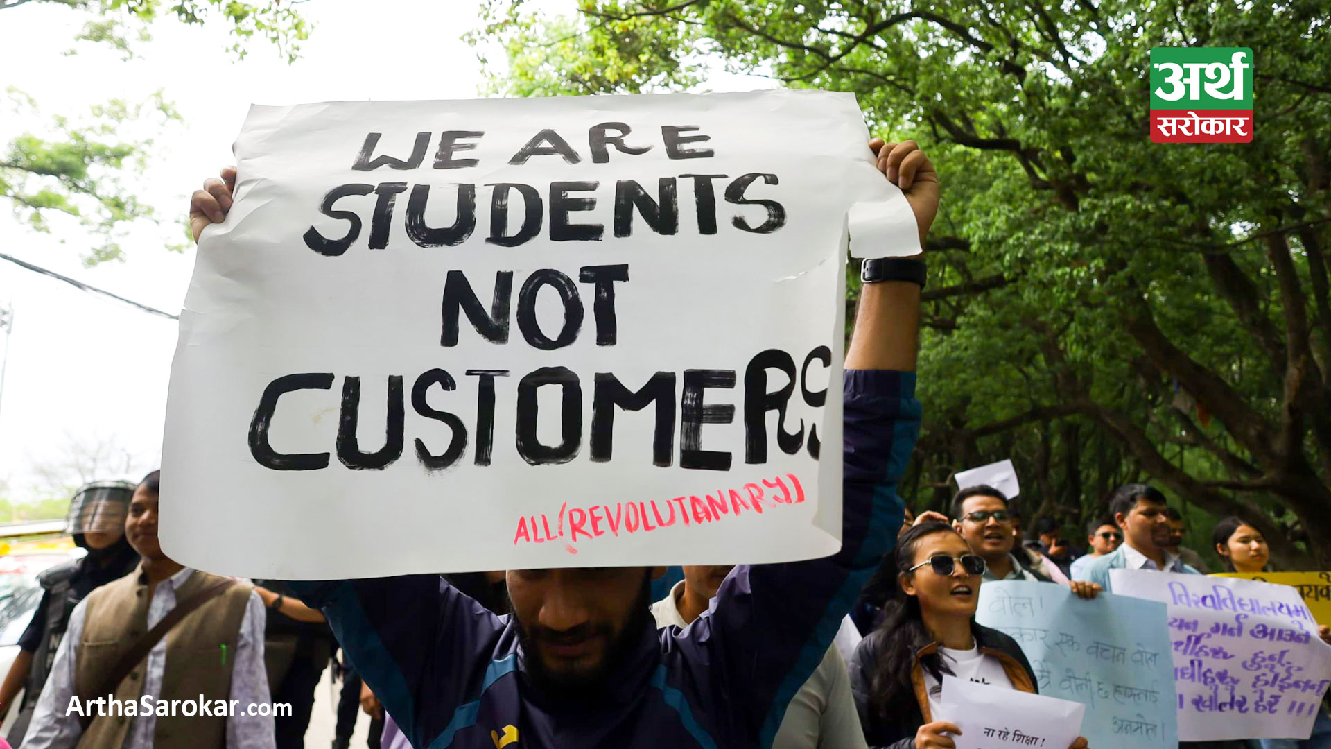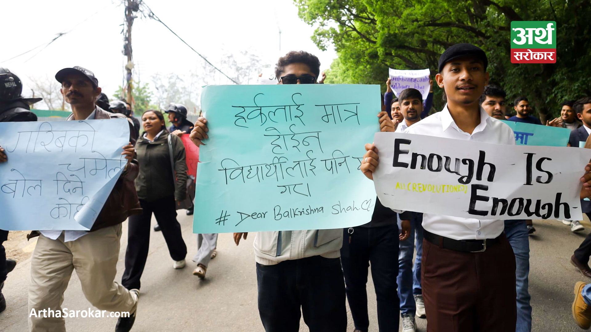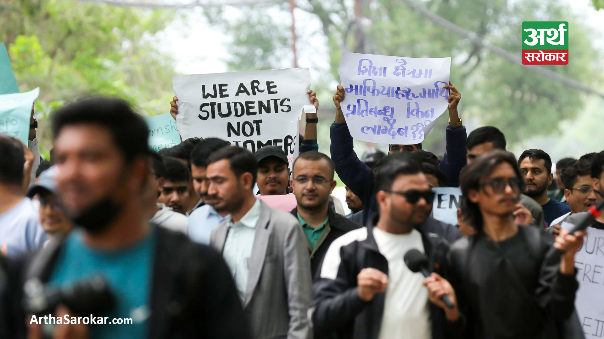 साथै, विद्यार्थीलाई यातायातमा दिइँदै आएको ४५ प्रतिशत भाडा छुटलाई यथावत् कायम गर्न र विद्यार्थी संगठनमाथि लगाउन खोजिएको प्रतिबन्धसँगै स्वतन्त्र विद्यार्थी युनियन (स्ववियु) खारेज गर्ने निर्णय फिर्ता लिन पनि माग गरेका छन् । उक्त मागसहित विद्यार्थीहरूले मार्चपासमार्फत सरकारको निर्णयप्रति आफ्नो असहमति प्रकट गरेका छन् । बाँकी तस्विरमा हेर्नुहोस्ः
