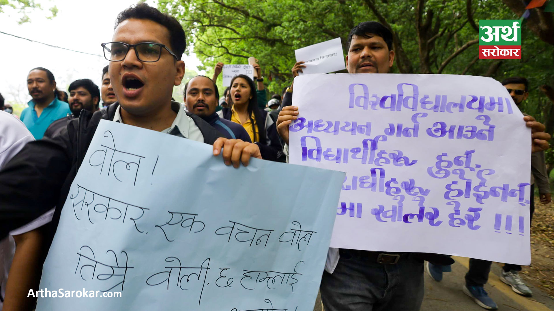 त्रिभुवन विश्वविद्यालय घण्टाघरदेखि टियु गेटसम्म मार्चपास गर्दै विद्यार्थीहरूले सरकारको निर्णयप्रति असन्तुष्टि व्यक्त गरेका हुन् । उनीहरूको भनाइमा विद्यार्थी संगठनमाथि प्रतिबन्ध लगाउने निर्णय संविधान र लोकतान्त्रिक मूल्य-मान्यताविपरीत हुनुका साथै नागरिक अधिकारमाथिको प्रत्यक्ष हस्तक्षेप हो। त्यसैले उक्त निर्णय तत्काल फिर्ता गर्नुपर्ने माग गरिएको छ ।