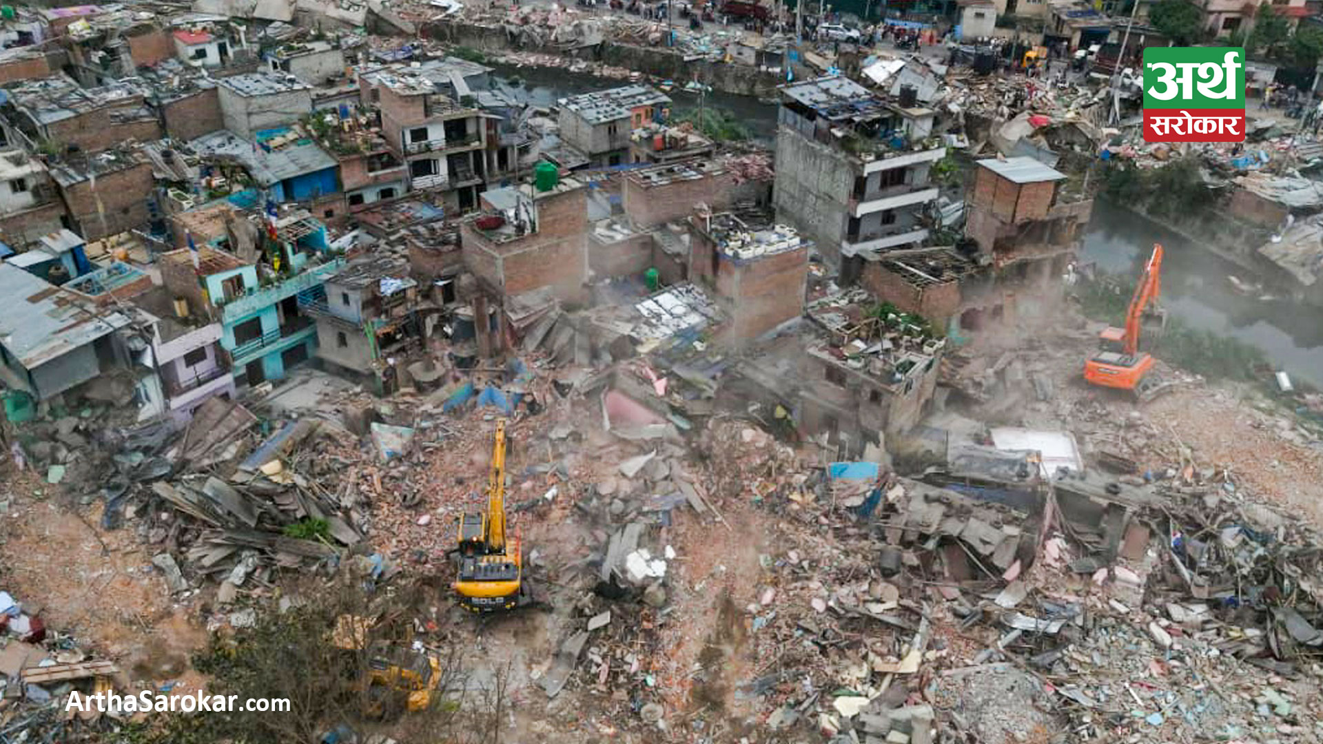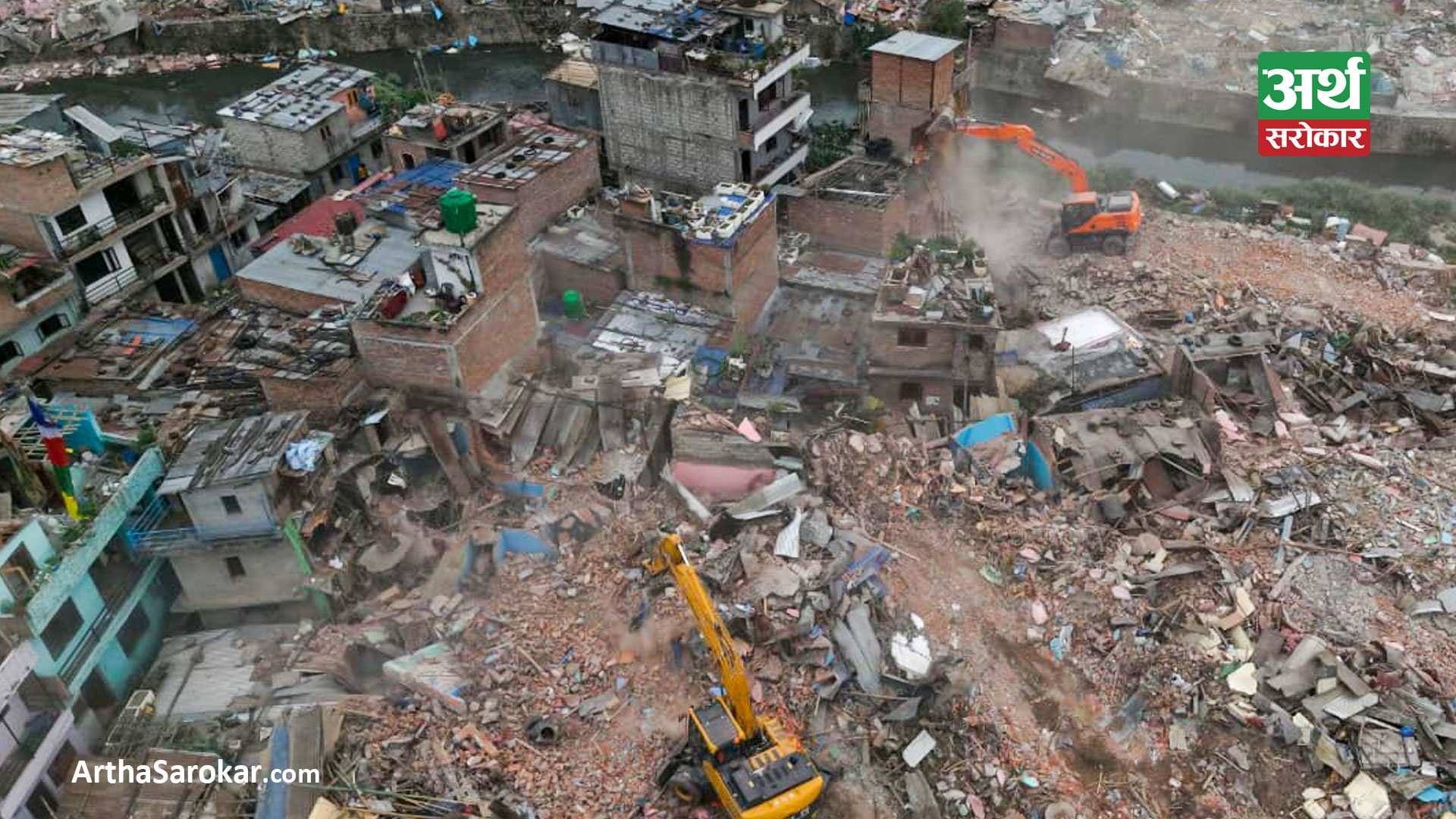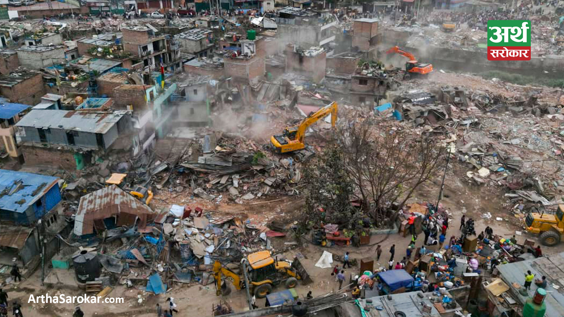 बस्तीमा डोजर चलेपछि नदी किनारको भाग खाली र चौडा भएका छन् । शनिबार घरहरु भत्काउने काम नसकिएकाले आइतबार पनि डोजर चलाउन सुरु गरिएको छ । बाँकी तस्विरमा हेर्नुहोस्ः