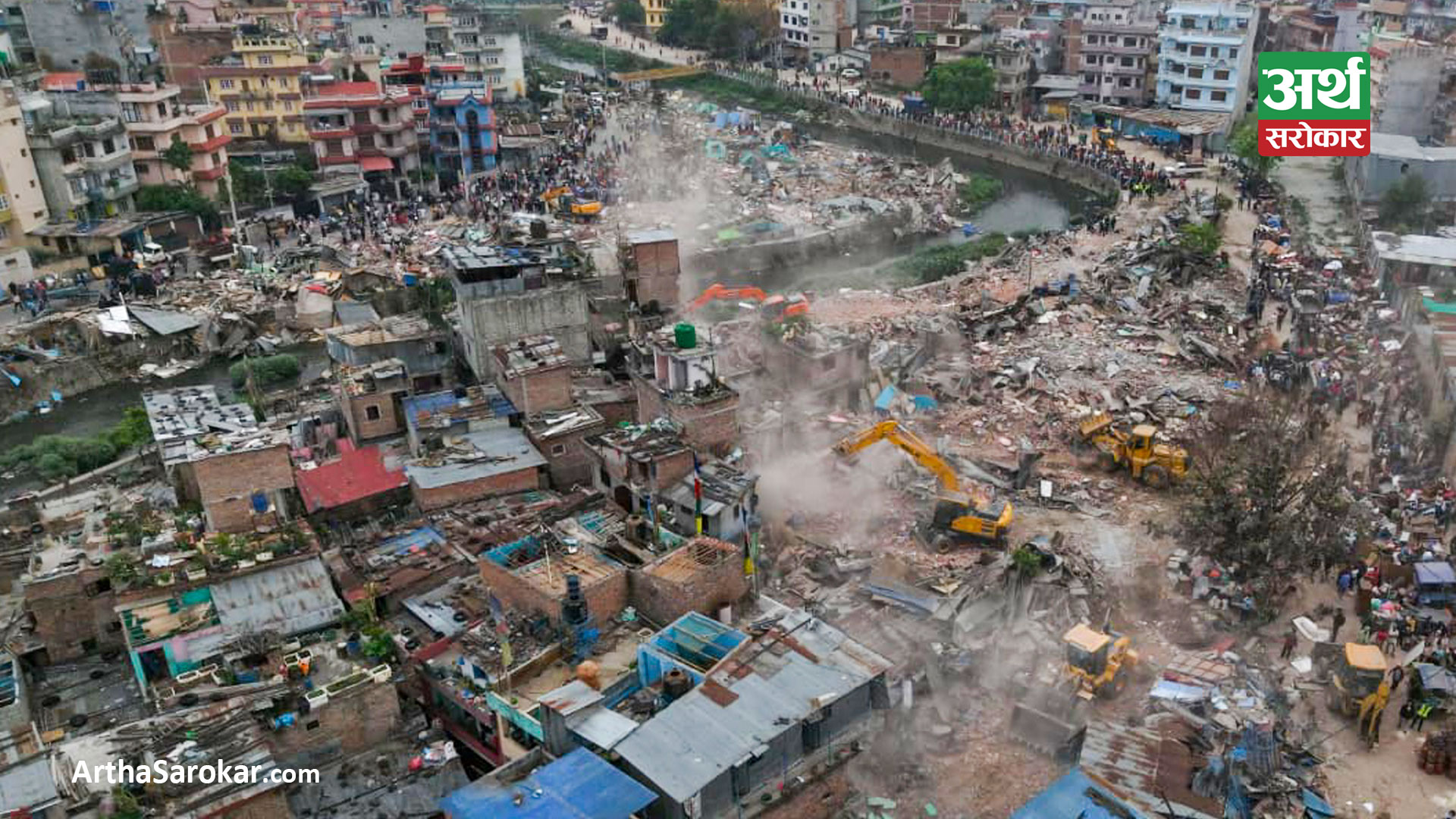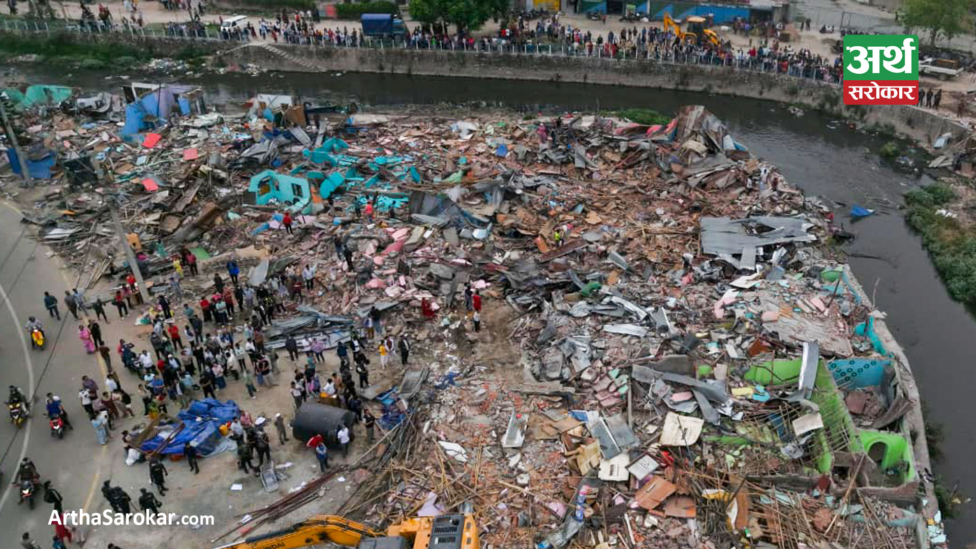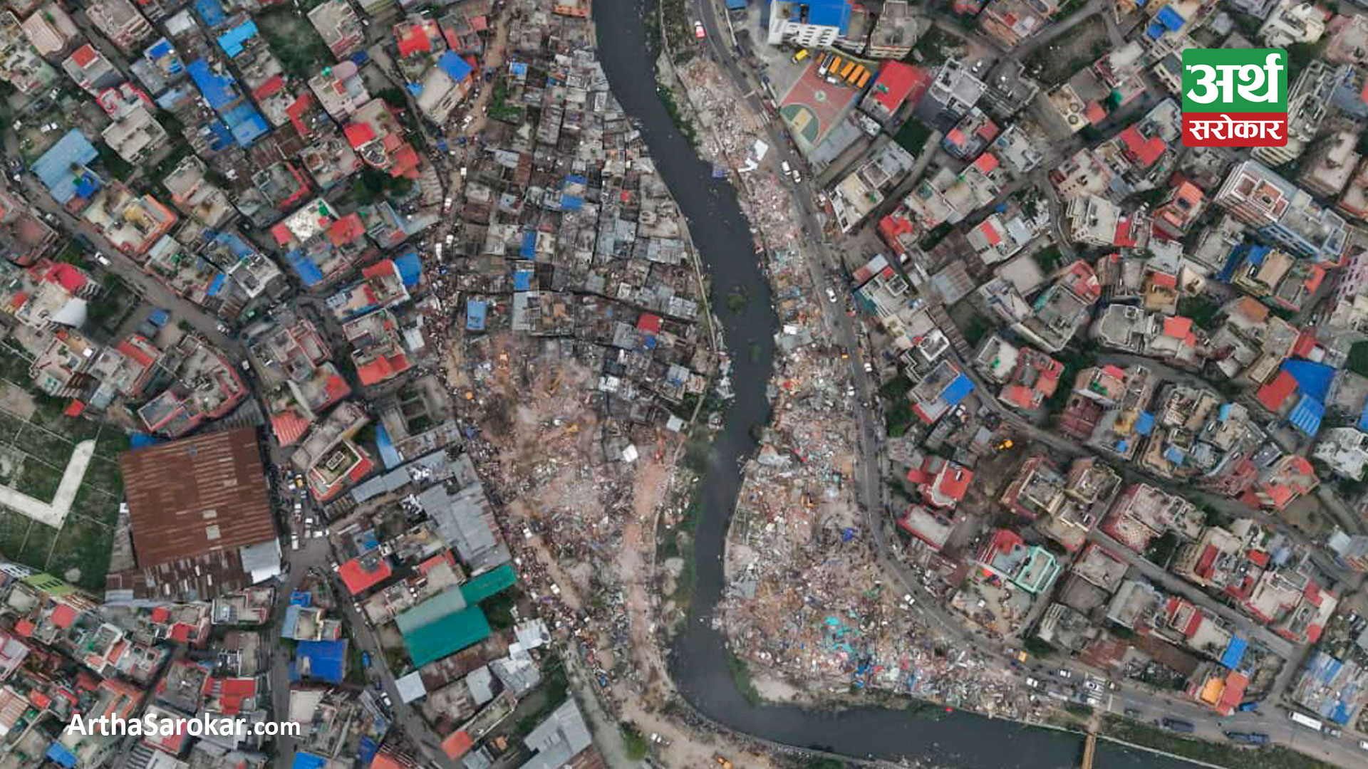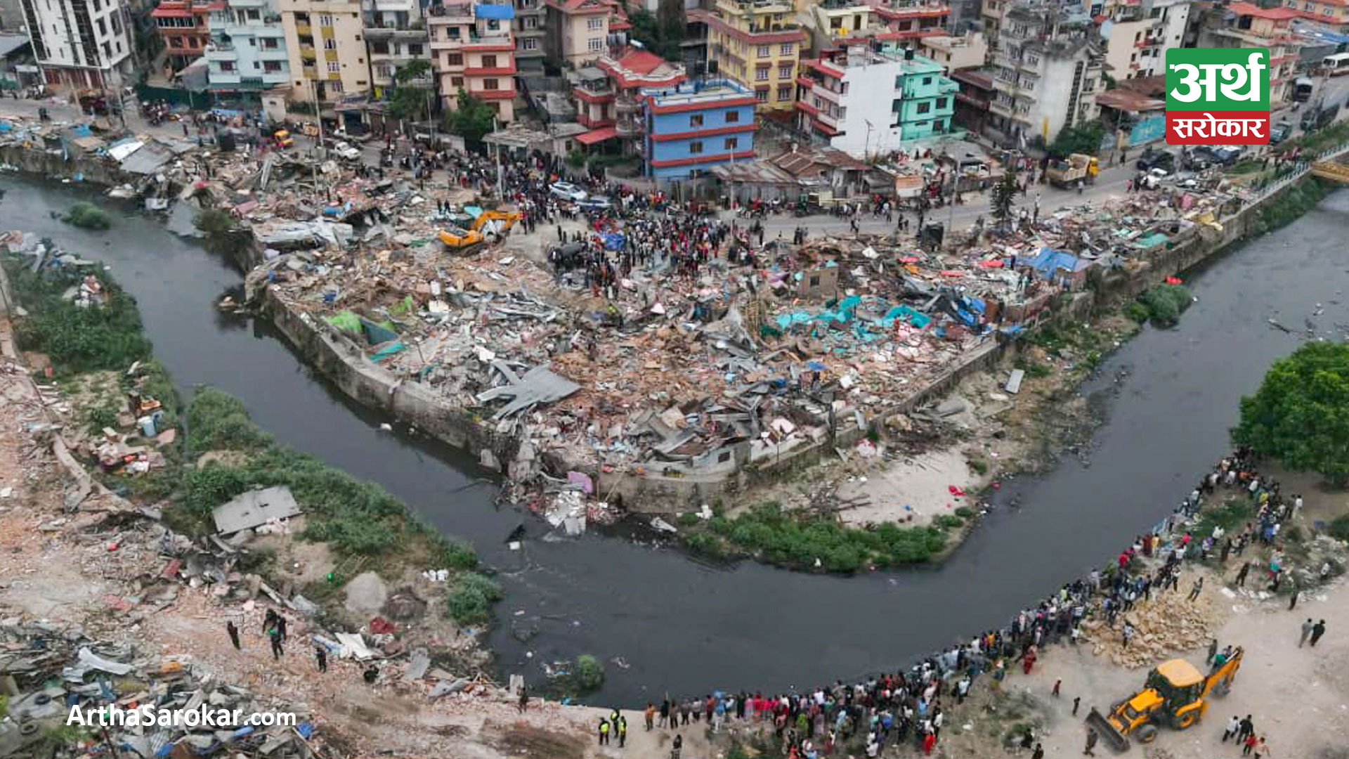 बस्तीमा डोजर चलेपछि नदी किनारको भाग खाली र चौडा भएका छन् । शनिबार घरहरु भत्काउने काम नसकिएकाले आइतबार पनि डोजर चलाउन सुरु गरिएको छ । बाँकी तस्विरमा हेर्नुहोस्ः